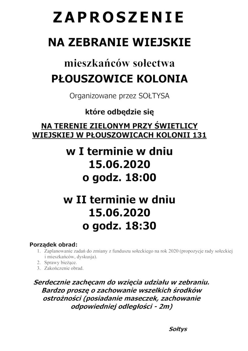 ZAPROSZENIE NA ZEBRANIE WIEJSKIE