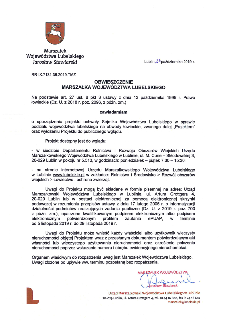 OBWIESZCZENIE MARSZAŁKA WOJEWÓDZTWA LUBELSKIEGO