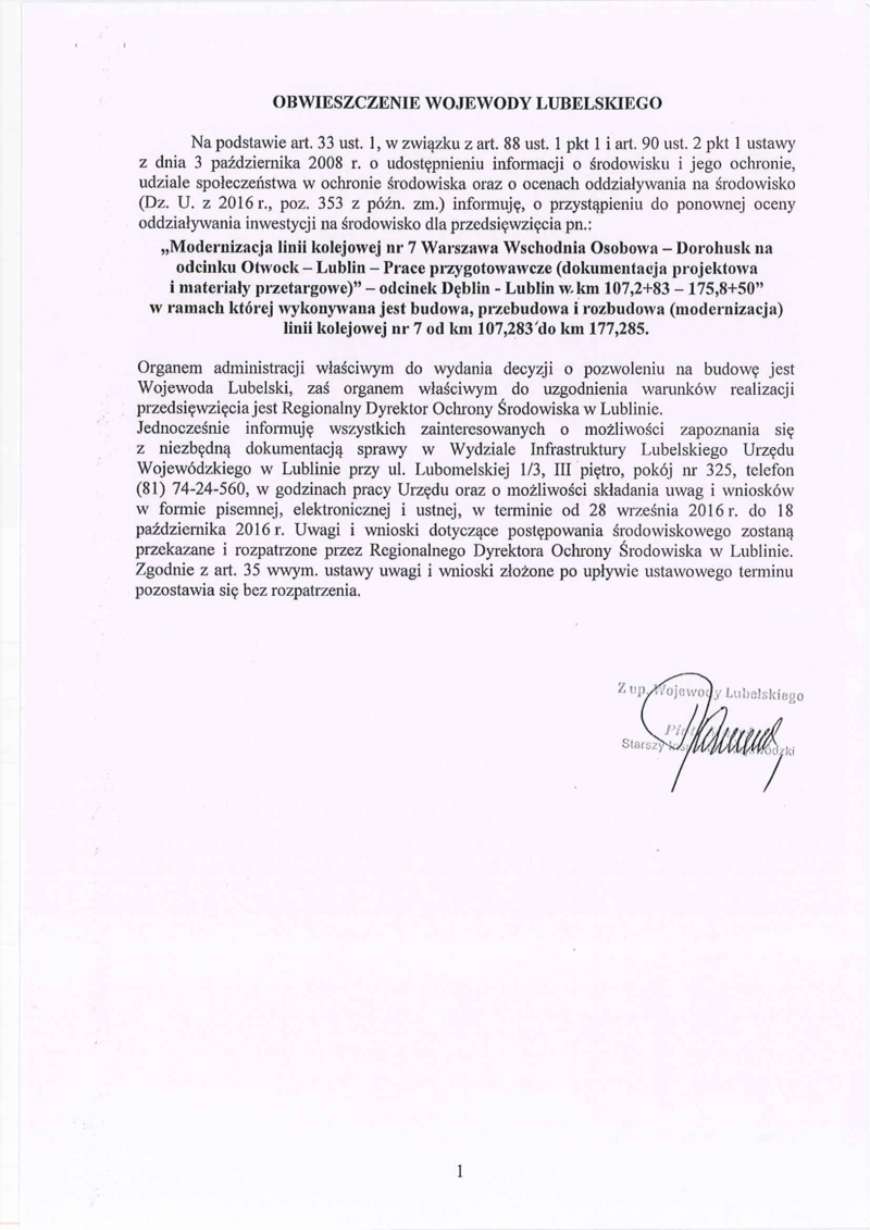 OBWIESZCZENIE WOJEWODY LUBELSKIEGO