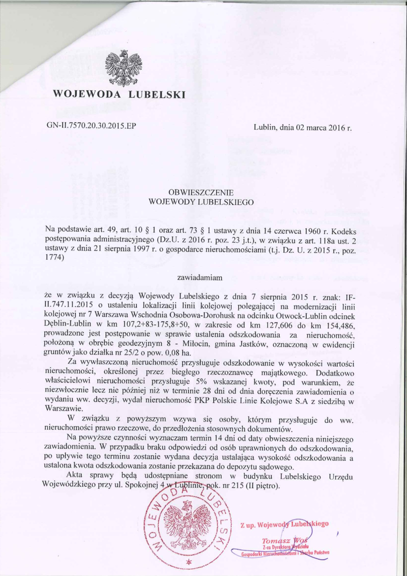 OBWIESZCZENIE WOJEWODY LUBELSKIEGO, GN-II.7570.20.30.2015.EP