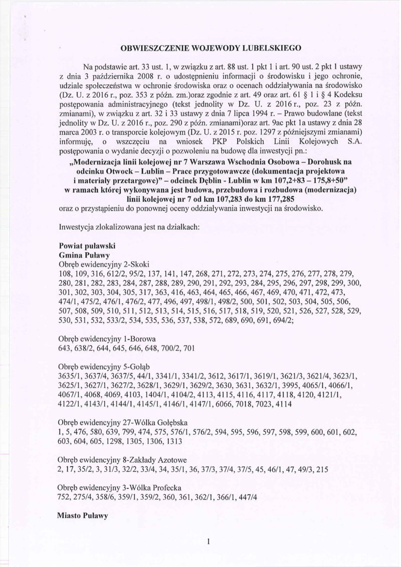 OBWIESZCZENIE WOJEWODY LUBELSKIEGO