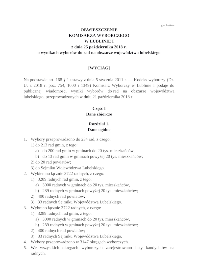 OBWIESZCZENIE KOMISARZA WYBORCZEGO W LUBLINIE I Z DNIA 25 PAŹDZIERNIKA 2018 R.