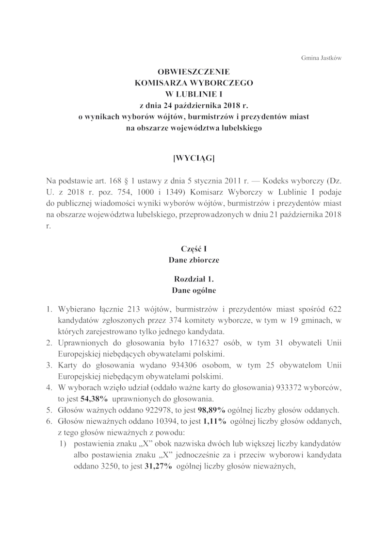 OBWIESZCZENIE KOMISARZA WYBORCZEGO W LUBLINIE I Z DNIA 24 PAŹDZIERNIKA 2018 R.