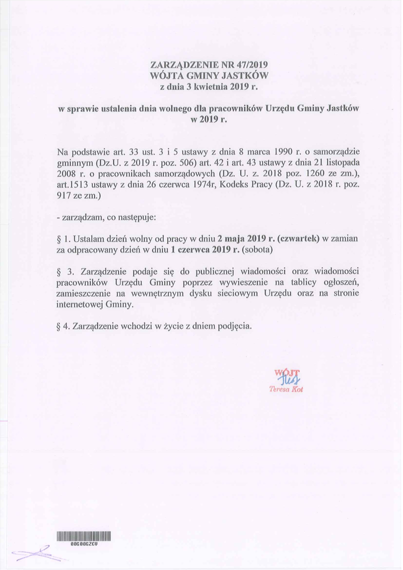 2 MAJA DNIEM WOLNYM W URZĘDZIE GMINY JASTKÓW