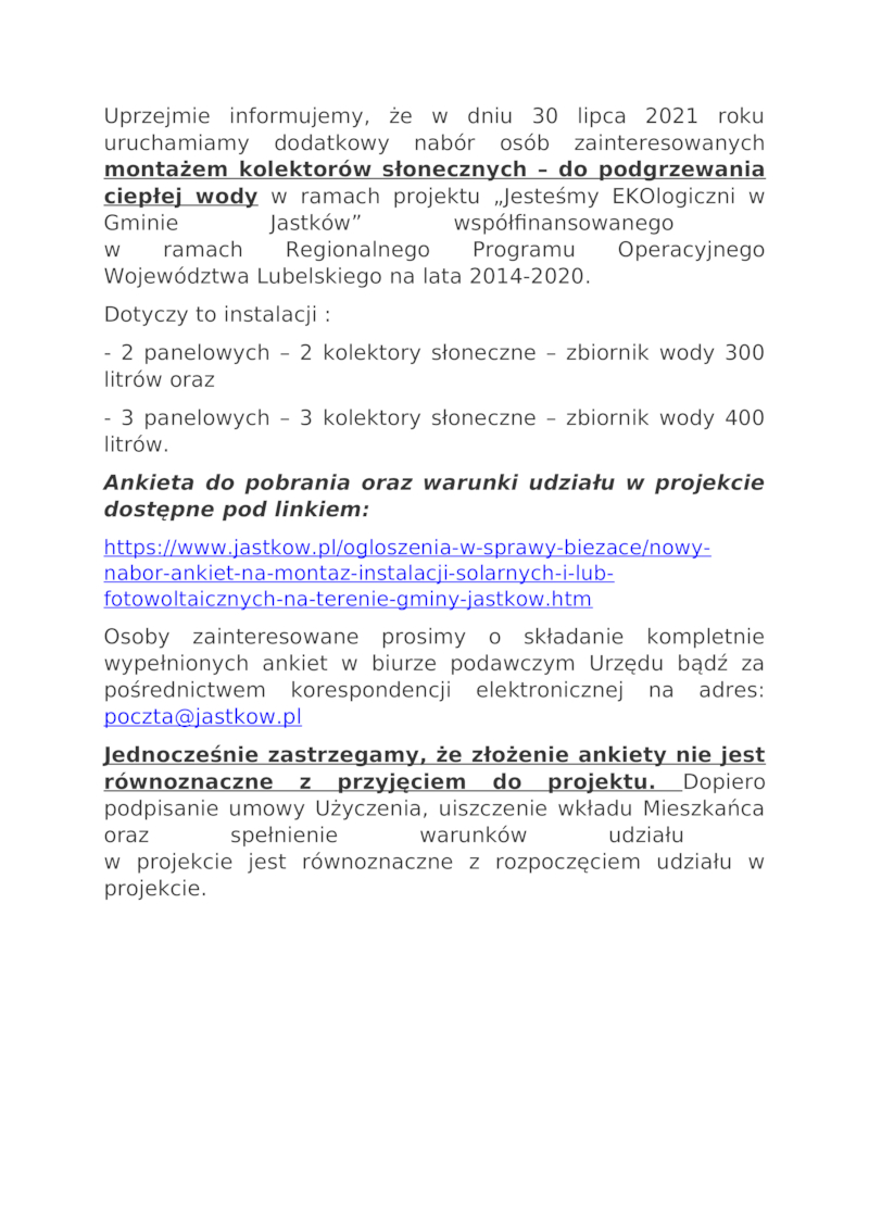 DODATKOWY NABÓR NA LISTĘ REZERWOWĄ SOLARY