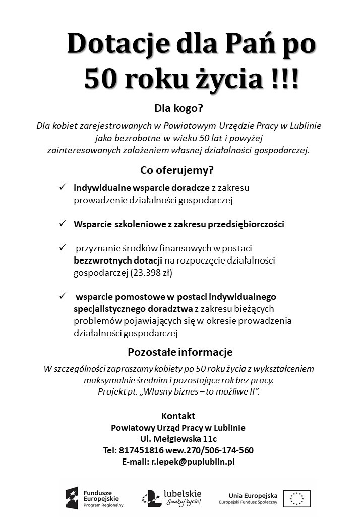 DOTACJE DLA PAŃ PO 50 ROKU ŻYCIA !!!
