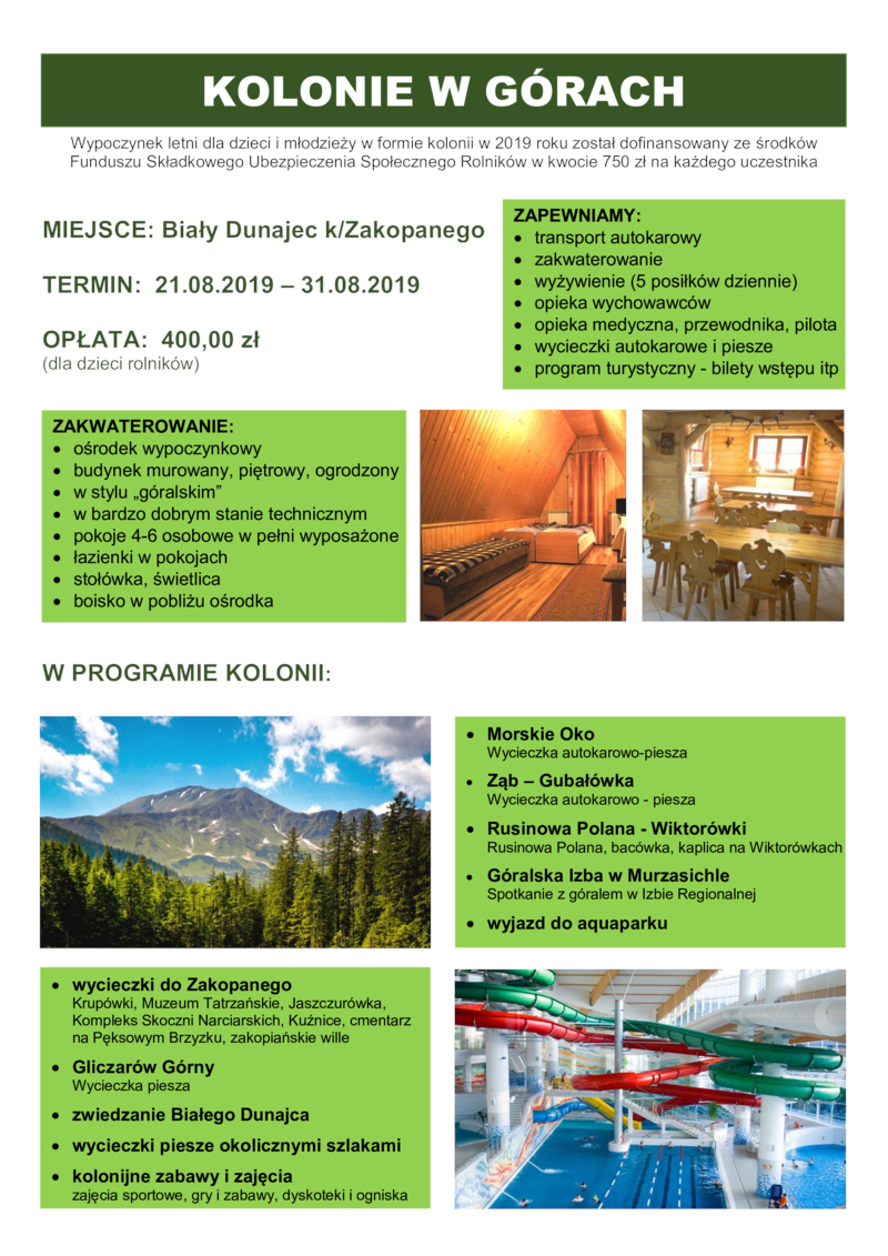 Gmina Jastków we współpracy ze Stowarzyszeniem Wspierania Inicjatyw Oświatowo-Wychowawczych im. Teresy Kras w Lublinie organizuje wypoczynek letni dla dzieci, których rodzice/opiekunowie ubezpieczeni są w KRUS. Szczegóły w załączniku.