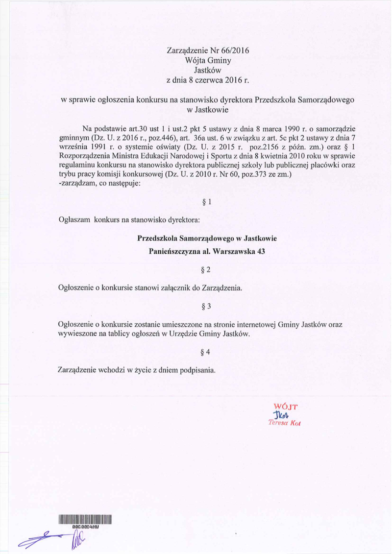 4. Konkurs na stanowisko dyrektora przeprowadzi komisja konkursowa powołana zarządzeniem Wójta Gminy Jastków.
