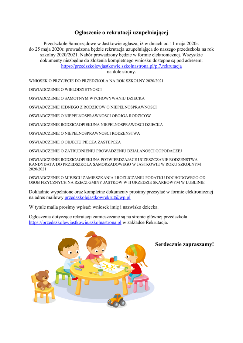 OGŁOSZENIE O REKRUTACJI UZUPEŁNIAJĄCEJ