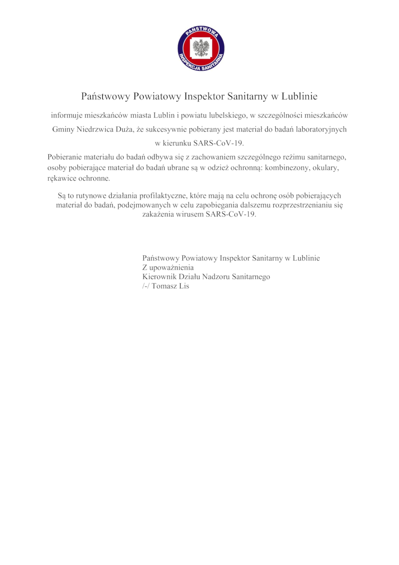 PAŃSTWOWY POWIATOWY INSPEKTOR SANITARNY W LUBLINIE INFORMUJE
