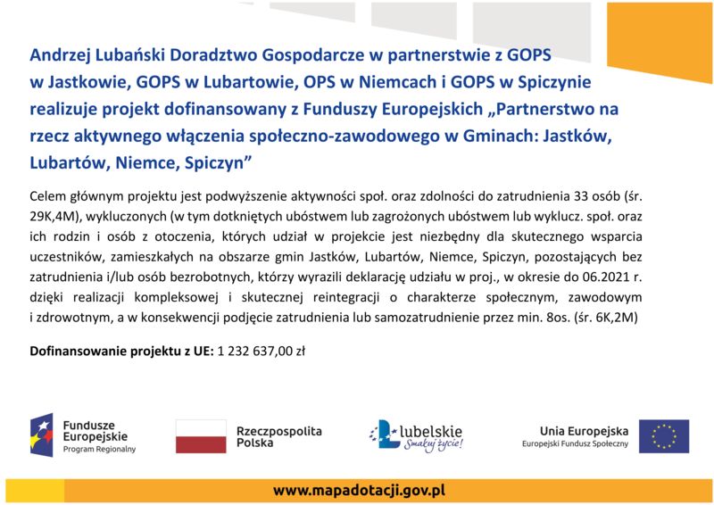 PARTNERSTWO NA RZECZ AKTYWNEGO WŁĄCZENIA SPOŁECZNO-ZAWODOWEGO W GMINACH: JASTKÓW, LUBARTÓW, NIEMCE, SPICZYN