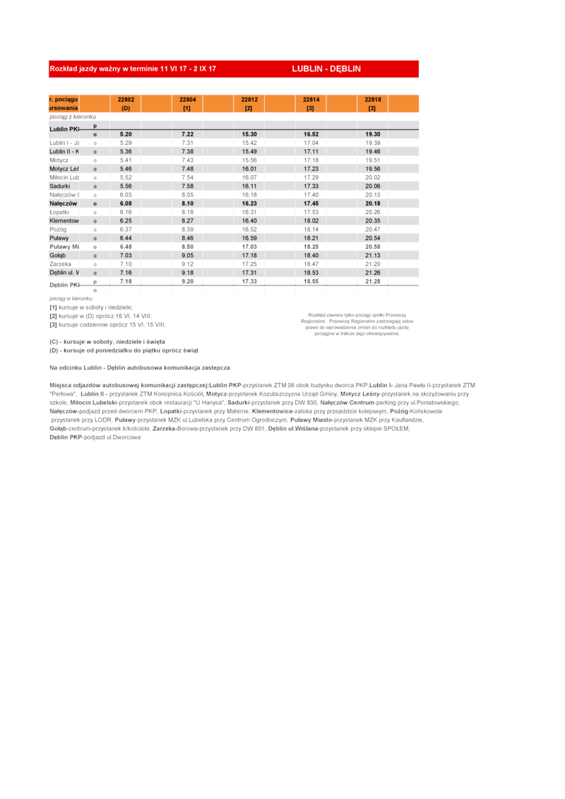 ROZKŁAD JAZDY LUBLIN - DEBLIN, DĘBLIN - LUBLIN 11.06.2017 - 2.09.2017
