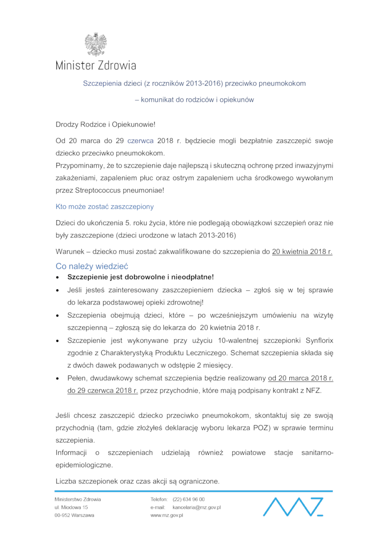 SZCZEPIENIA DZIECI (Z ROCZNIKÓW 2013-2016) PRZECIWKO PNEUMOKOKOM