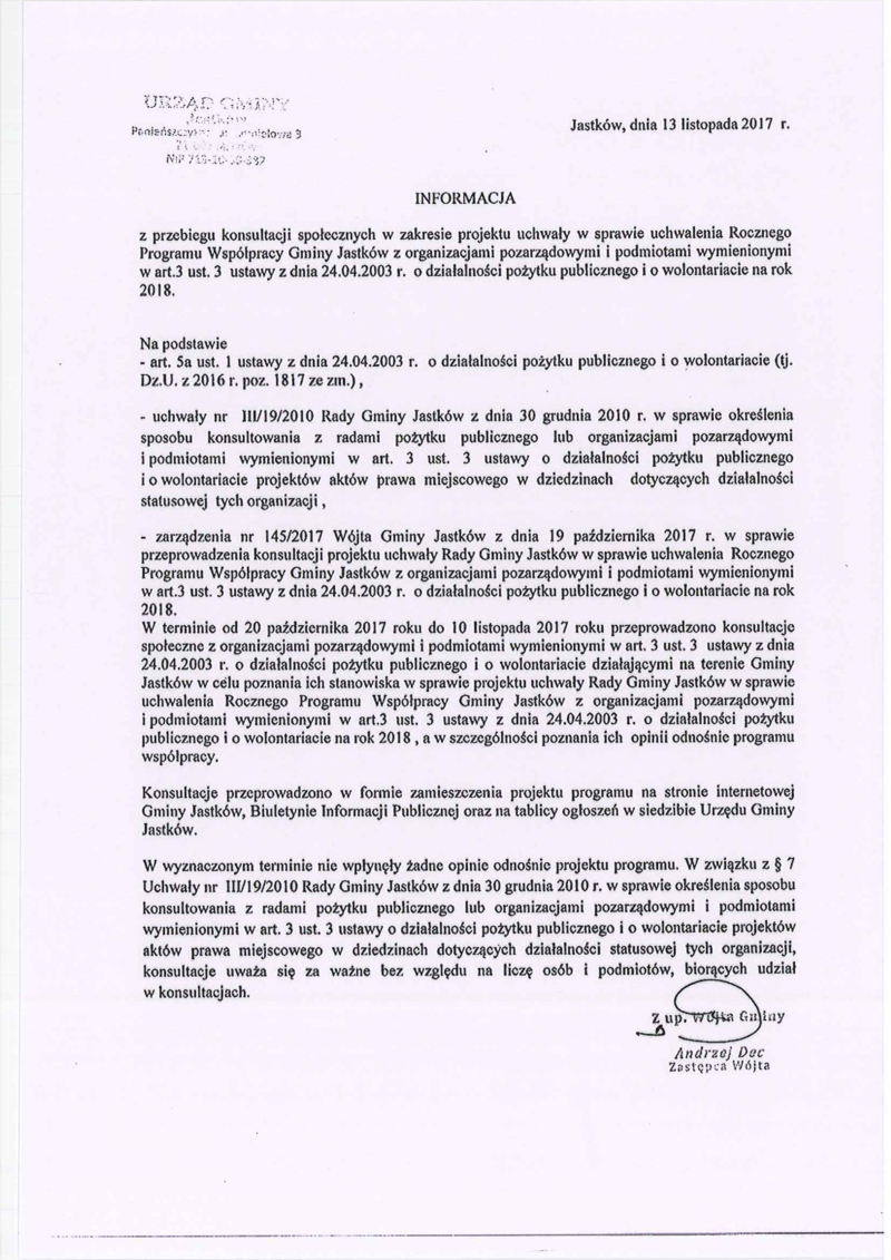 INFORMACJA Z PRZEBIEGU KONSULTACJI SPOŁECZNYCH