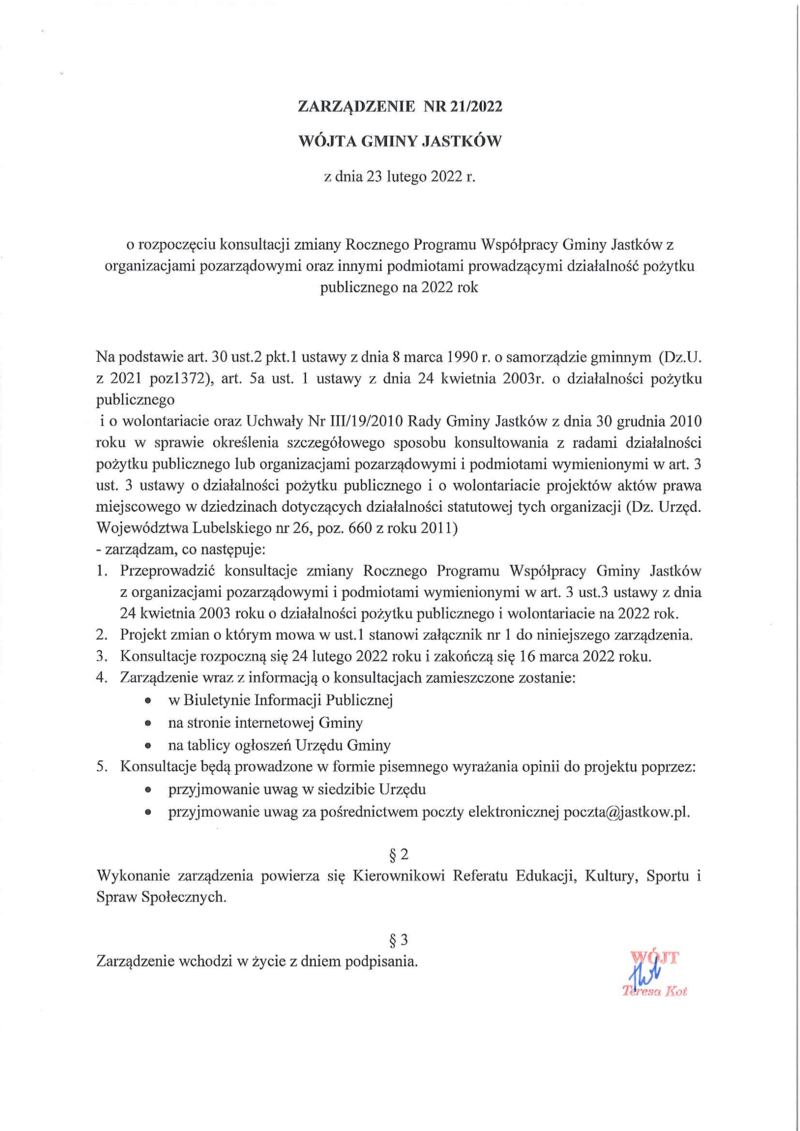 OGŁOSZENIE O ROZPOCZĘCIU KONSULTACJI SPOŁECZNYCH