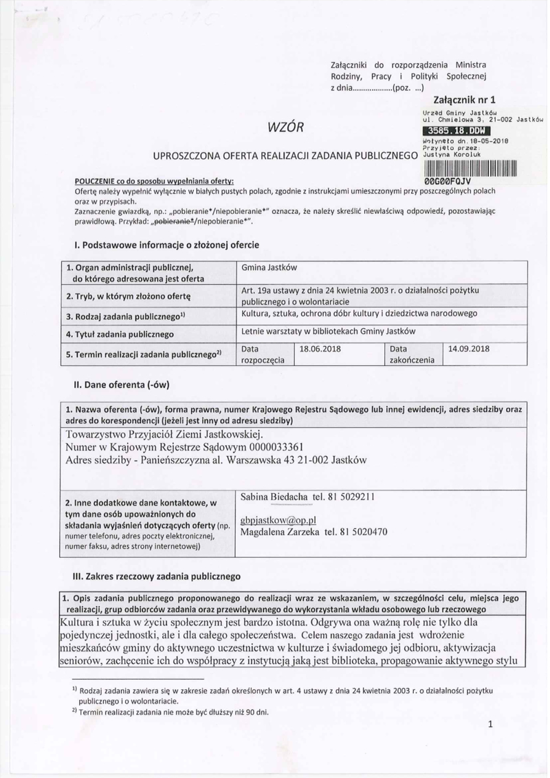UPROSZCZONA OFERTA REALIZACJ ZADANIA PUBLICZNEGO - TOWARZYSTWO PRZYJACIÓŁ ZIEMI JASTKOWSKIEJ