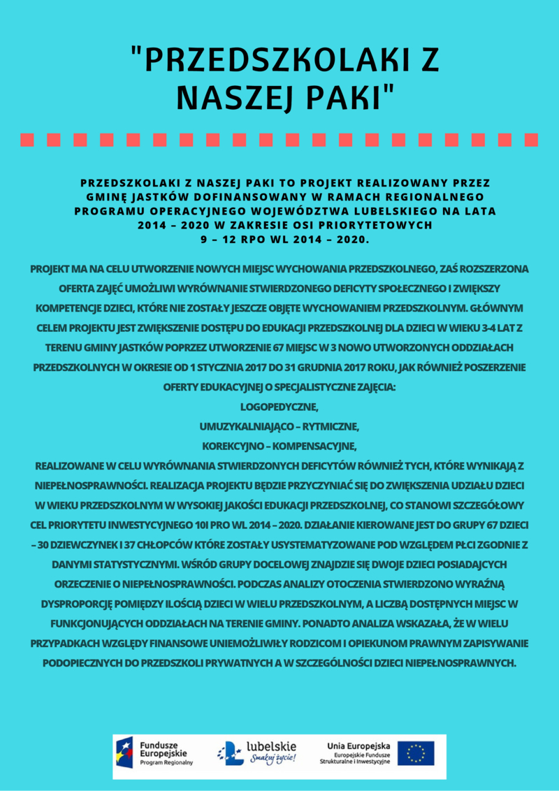 BAL KARNAWAŁOWY W ODDZIAŁACH PRZEDSZKOLNYCH W JASTKOWIE W RAMACH PROJEKTU "PRZEDSZKOLAKI Z NASZEJ PAKI"