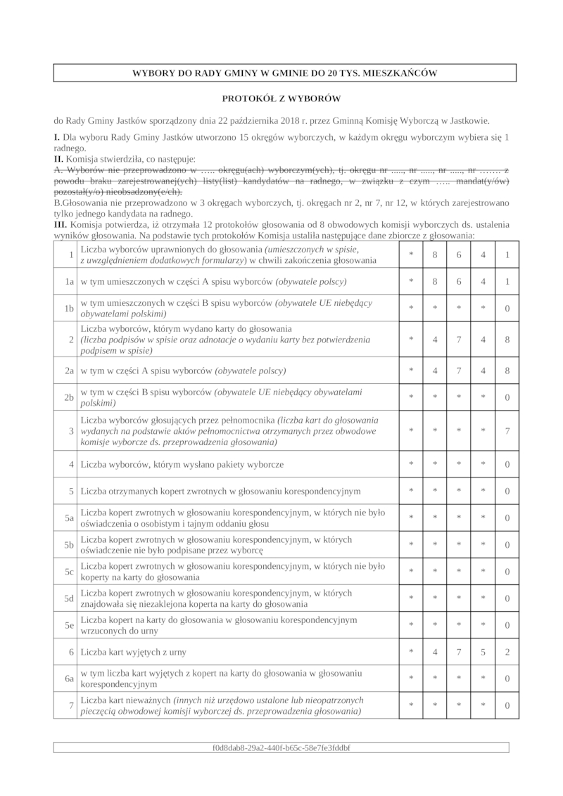 OFICJALNE WYNIKI WYBORÓW DO RADY GMINY JASTKÓW