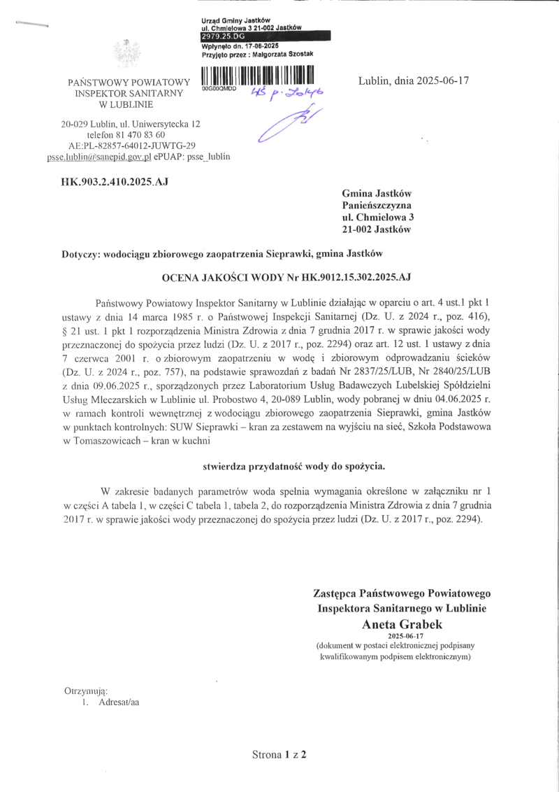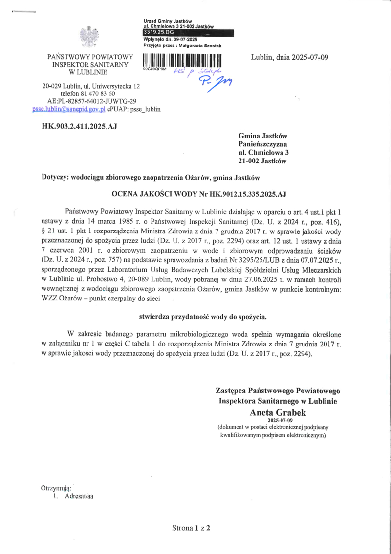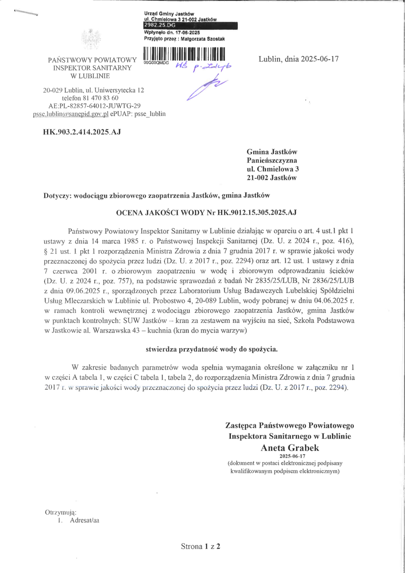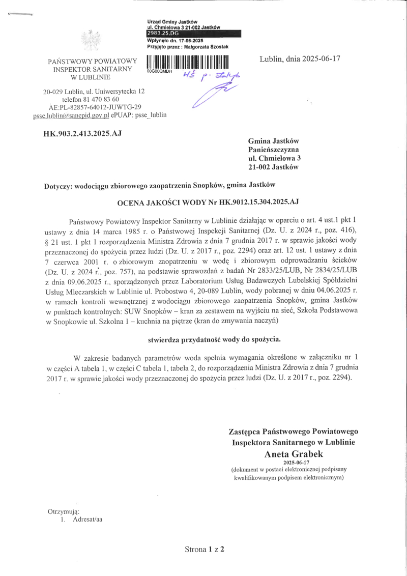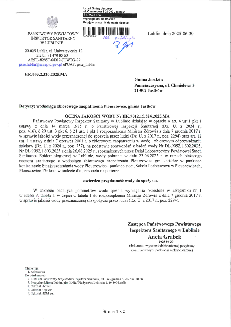 PRZYDATNOŚĆ WODY DO SPOŻYCIA