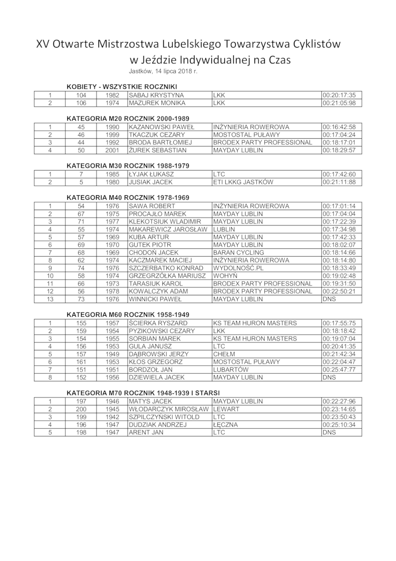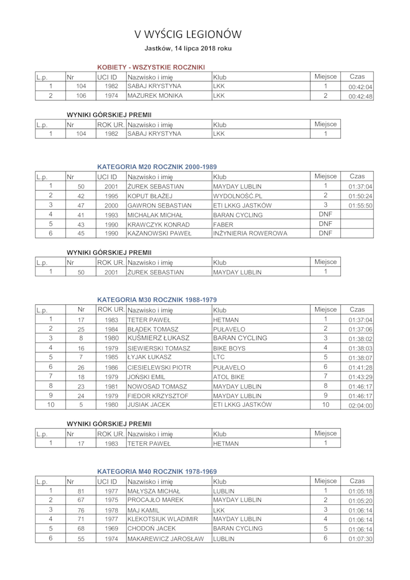 W załączeniu – szczegółowe wyniki obydwu wyścigów.