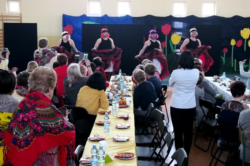 W programie „Dnia Kobiet” nie zabrakło ciekawostek ze świata urody oraz praktycznych porad eksperta z dziedziny kosmetologii pani Anny Żurawskiej vel Dziurawiec. Mocnym punktem rozrywkowym okazał się pokaz iluzji w wykonaniu lubelskiego artysty p. Michała Zaorskiego. Panie z wielką chęcią uczestniczyły w tym niezwykłym show, gdzie prezentowane zjawiska okazywały się pozornie sprzeczne z prawami fizyki. W drugiej części programu artystycznego publiczność mogła podziwiać nowe układy choreograficzne w wykonaniu Zespołu Pieśni i Tańca „Dąbrowic. Tego dnia odbyła się premiera nowego LUBLINA po raz pierwszy rozpisana na 12 par! Grupa dziecięca pięknie odtańczyła niedawno poznany taniec narodowy, Krakowiaka. A kapela ludowa, pod kierunkiem p. Daniela Mazurka pochwaliła się nowym utworem i wykonała „Wiązankę Opoczyńską”. Na zakończenie odbyła się wyjątkowy i niepowtarzalny występ tajemniczej grupy rodem ze słynnego kabaretu Moulin Rouge... Specjalnie dla Pań z okazji ich święta w galopującym i wręcz akrobatycznym tańcu... KANKANIE!