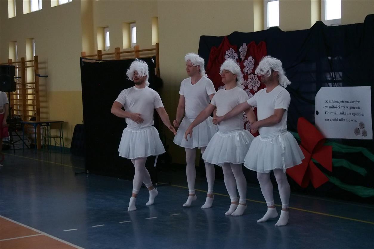 Niespodzianką okazał się jednak występ, który na długo utkwi w pamięci publiczności... Na płouszowickiej scenie wystąpiła niezwykła taneczna grupa... "Jastkowskie łabądki", która wywołała ogromne poruszenie wśród widowni... To był niezapomniany widok! Kuracja odmładzająca się udała... trudno było nie uniknąć takich wybuchów... śmiechu! Gratulujemy panom odwagi i gracji jaką zaprezentowali na gminnym "Dniu Kobiet"!