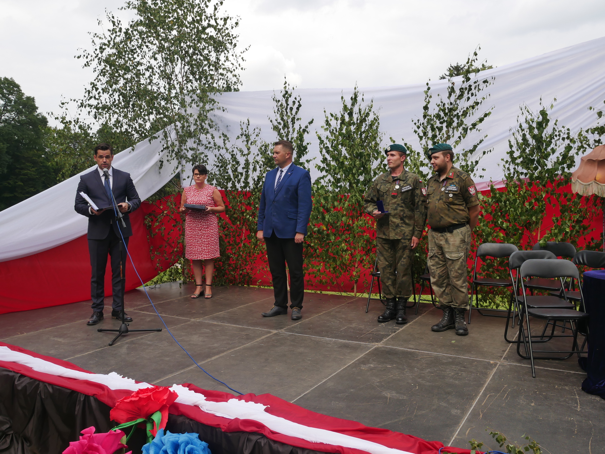 i środowisk kombatanckich. Po złożeniu wieńców pod Pomnikiem Legionistów wszyscy pomaszerowali, przy akompaniamencie orkiestry dętej, do parku przy Urzędzie Gminy Jastków by wziąć udział w kolejnej części uroczystości. Rozpoczęło ją wręczeniem Medali „Pro Patria” przyznanych przez Szefa Urzędu do Spraw Kombatantów i Osób Represjonowanych Pana Ministra Jana Kasprzyka. Medale w jego imieniu wręczył Wojewoda Lubelski pan Przemysław Czarnek. Odznaczeni Pan Rafał Bociąg oraz Pan Mateusz Wałęcka szczególnie zasłużyli się w kultywowaniu pamięci o walce o niepodległość Ojczyzny.