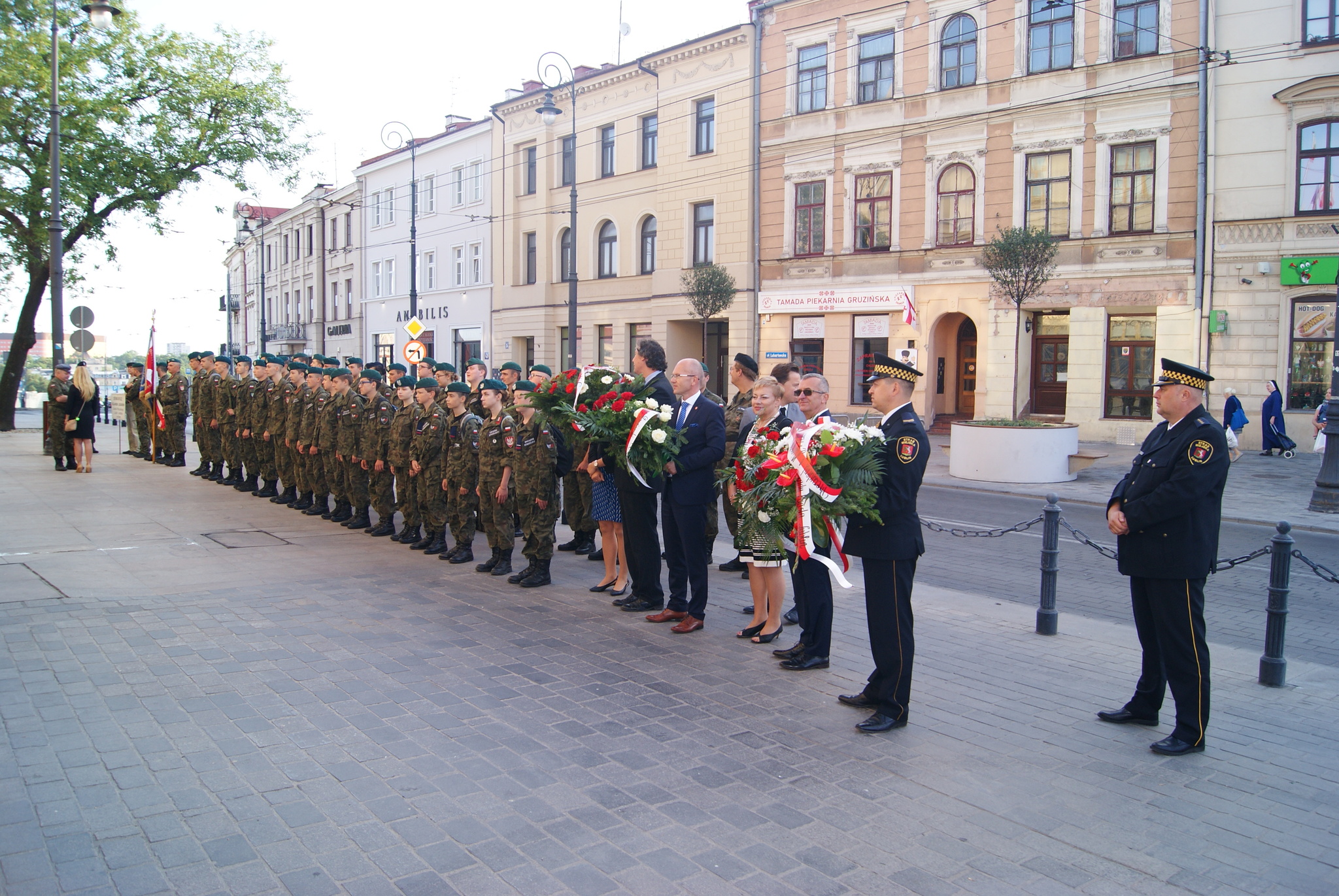 Uroczystości rocznicowe rozpoczęły się złożeniem wieńców pod tablicą poświęconą Legionom Józefa Piłsudskiego i generałowi Gustawowi Orlicz -Dreszerowi znajdującą się przed lubelskim Ratuszem. Kwiaty złożyły delegacje Urzędu Wojewódzkiego, Marszałkowskiego , Miasta Lublin, Gminy Jastków oraz Związku Piłsudczyków Oddział Lublin i Związku Oficerów Rezerwy RP wraz z uczestnikami XVII Marszu Szlakiem Legionów Józefa Piłsudskiego Lublin – Jastków. W następnej kolejności zebrani przemaszerowali pod pomnik Marszałka Józefa Piłsudskiego i Nieznanego Żołnierza na Placu Litewskim, gdzie po okolicznościowych przemówieniach złożono wiązanki i znicze.
