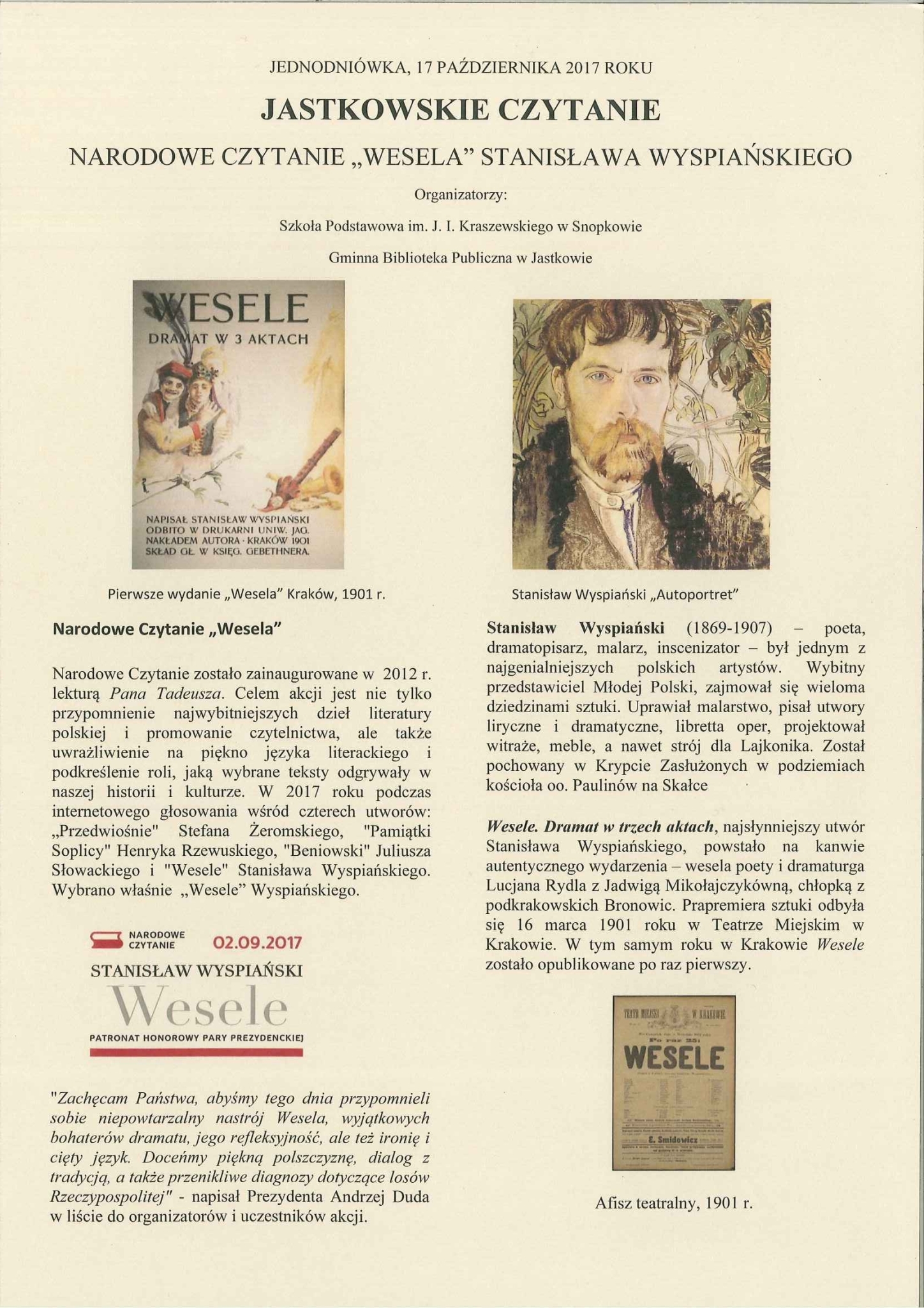 III JASTKOWSKIE CZYTANIE - STANISŁAW WYSPIAŃSKI "WESELE"