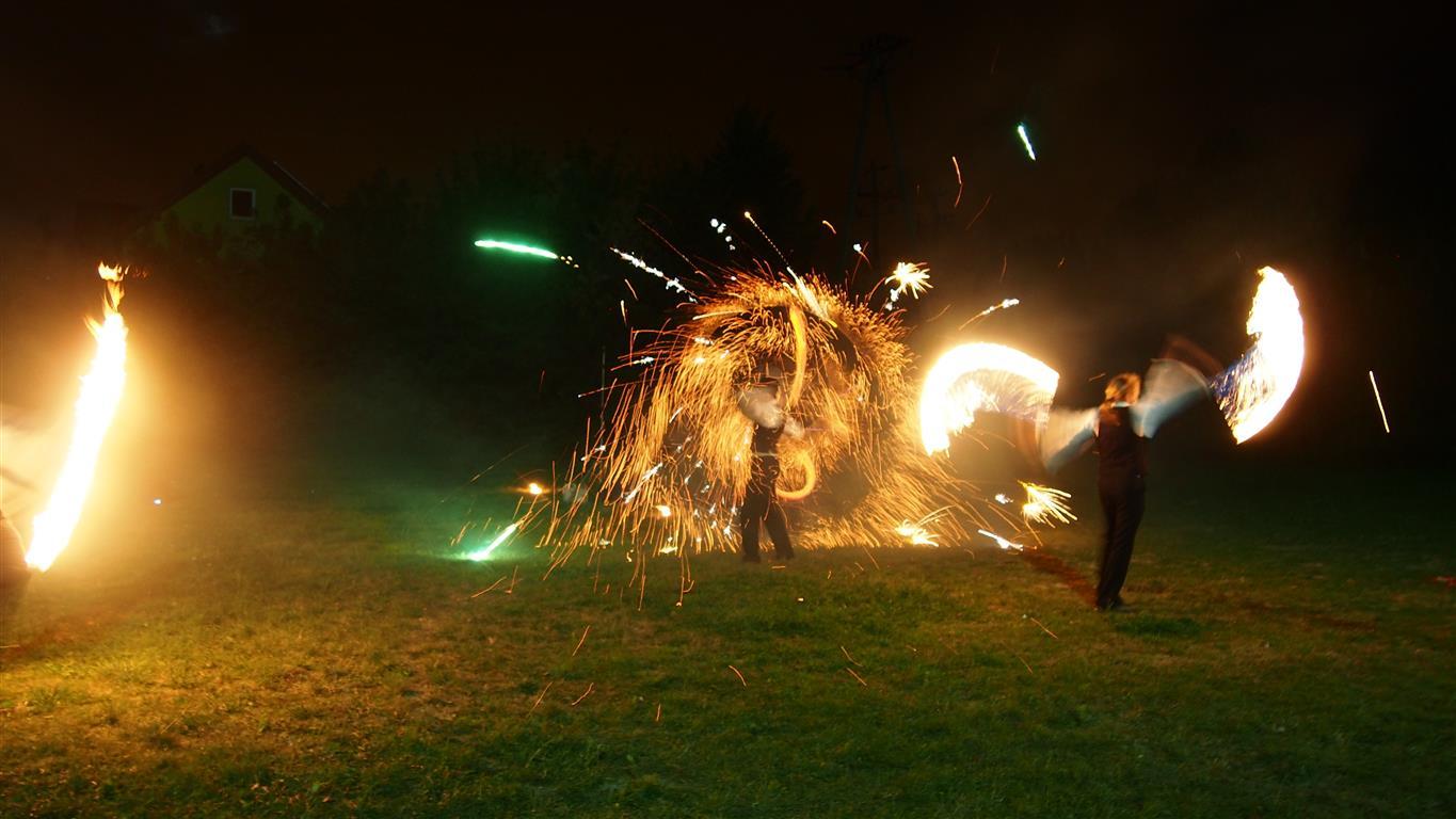 Na zakończenie jarmarku w nocnej scenerii wystąpiła fantastyczna grupa fireshow IN NOMINE, prezentując teatralne widowisko, w którym głównym bohaterem był ogień. Brawo! Wszystko odbyło się na terenie Gminnego Ośrodka Kultury i Sportu w Jastkowie zs. w Dąbrowicy oraz Domu Spotkań Caritas Archidiecezji Lubelskiej przy istniejącej jeszcze wieży Firlejów - jedynym w Dąbrowicy zachowanym zabytkiem pamiętający świetne czasy rodu magnackiego.