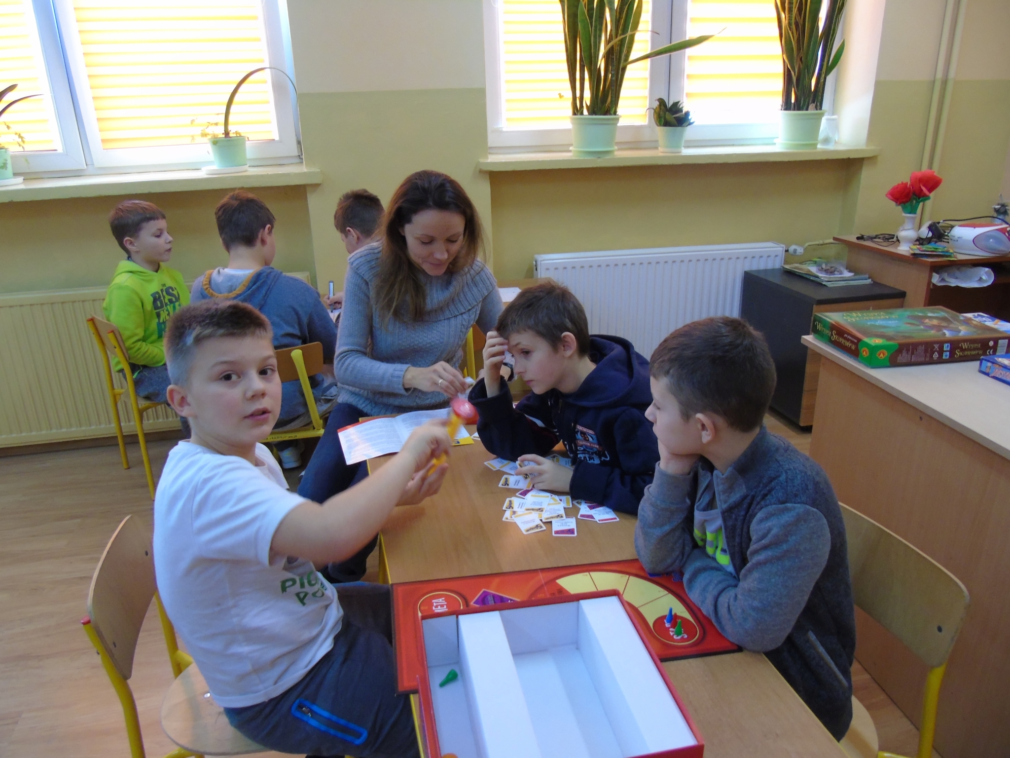 Drugi dzień „Ferii w szkole” odbył się pod nazwą „Zostań mistrzem gry”. Uczniowie wzięli udział w grze planszowej pełniąc rolę pionków. Celem gry było jak najszybsze dotarcie do mety, a po drodze można było zdobywać punkty, wykazując się szeroką wiedzą o świecie. Po emocjonującej walce o zwycięstwo, dzieci udały się do sali, gdzie czekały na nie różnorodne gry stolikowe. Uczniowie mogli posmakować rywalizacji o tytuł Mistrza Gry. Odważniejsi ochotnicy uczestniczyli w ogólnorozwojowym treningu fitness. Przyznały później, że dzięki niemu poczuły wszystkie mięśnie w swoim ciele. Na zakończenie spotkania nastąpiło rozdanie nagród nie tylko zwycięzcom, ale również wszystkim uczestnikom rywalizacji. Nikt nie wyszedł bez drobnego upominku i uśmiechu od ucha do ucha.