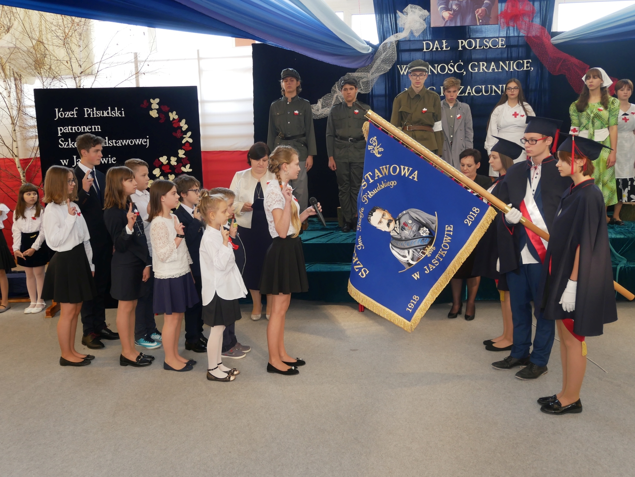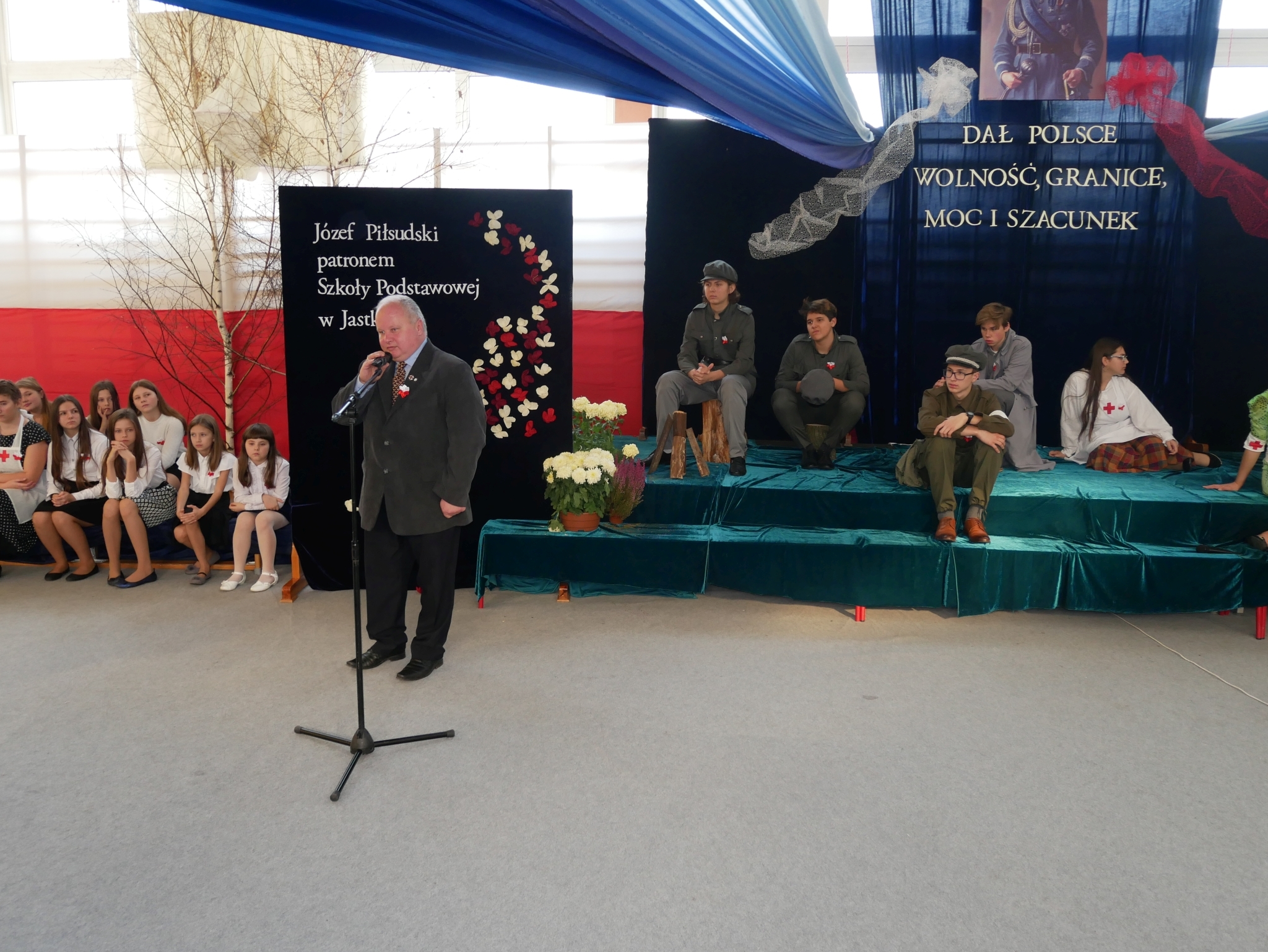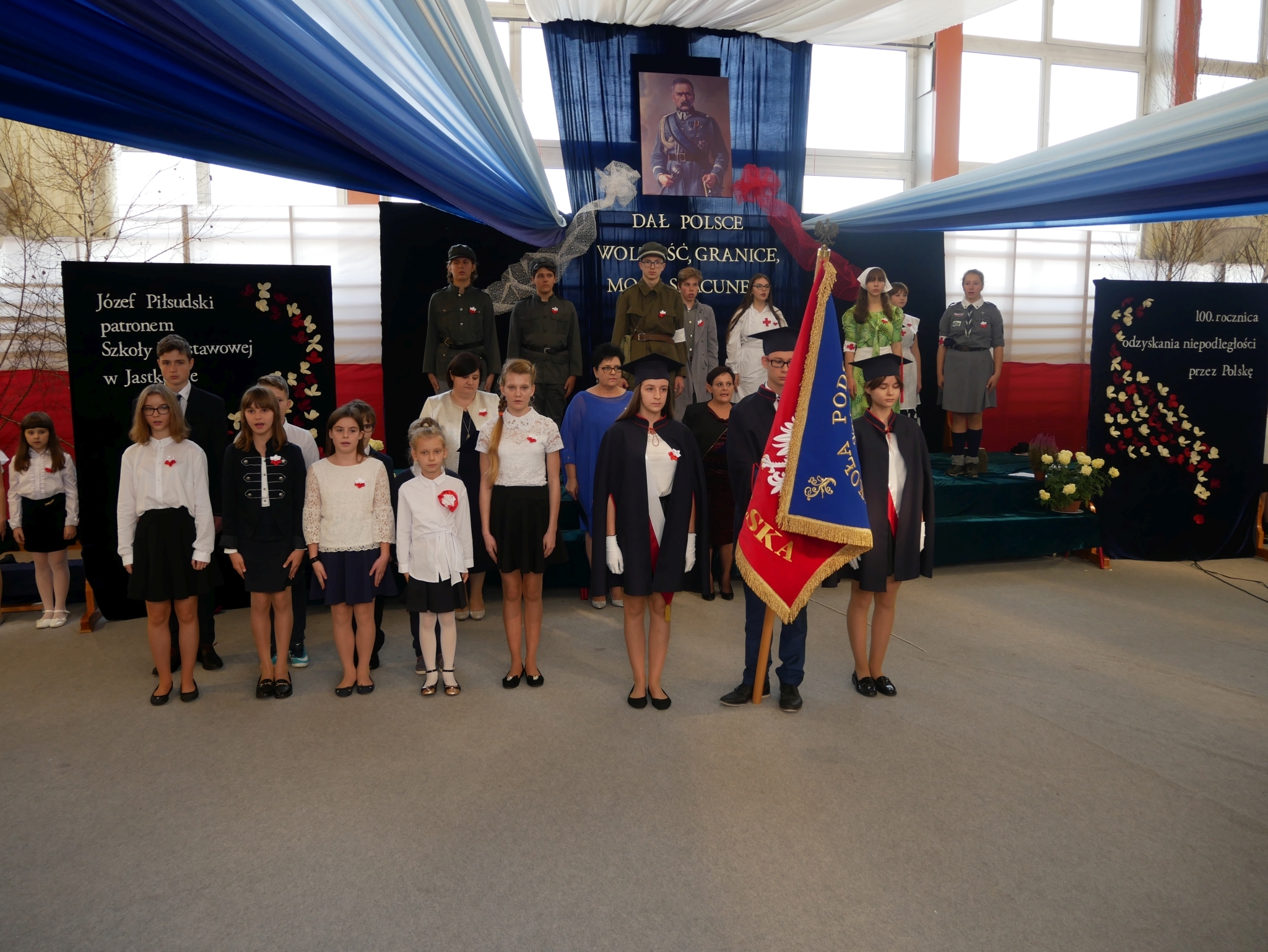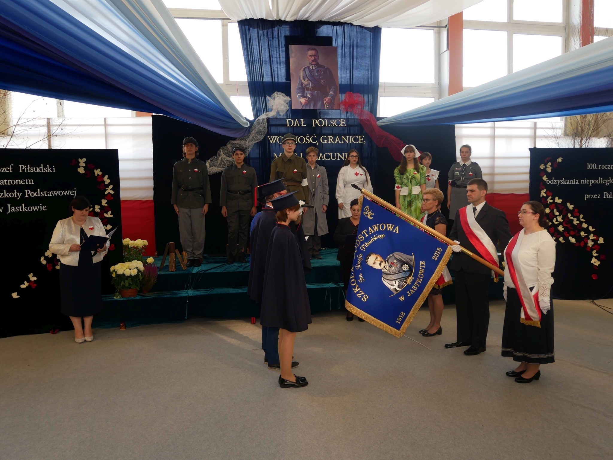 Warto przypomnieć, że Józef Piłsudski był patronem naszej szkoły w latach 1934-1939. W związku z sytuacją polityczną okresu powojennego, nowym patronem szkoły został Tadeusz Kościuszko – człowiek niezwykle zasłużony w historii naszego kraju, który jednak, w przeciwieństwie do Józefa Piłsudskiego, nie był bezpośrednio związany z historią naszej miejscowości. Gdy z dniem 31 sierpnia 2017 r. zakończyło działalność Gimnazjum im. Józefa Piłsudskiego w Jastkowie uznaliśmy za zasadne, aby Szkoła Podstawowa w Jastkowie ponownie otrzymała imię tego wielkiego Polaka – niezłomnego patrioty, wielkiej klasy polityka i męża stanu, legendarnego komendanta I Brygady Legionów.