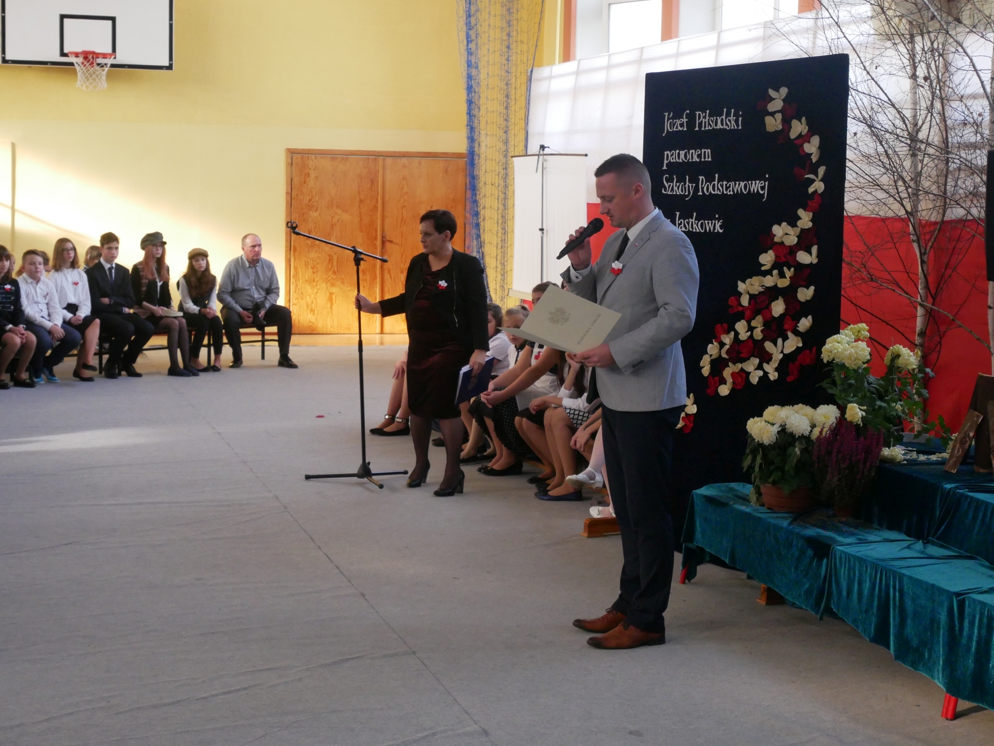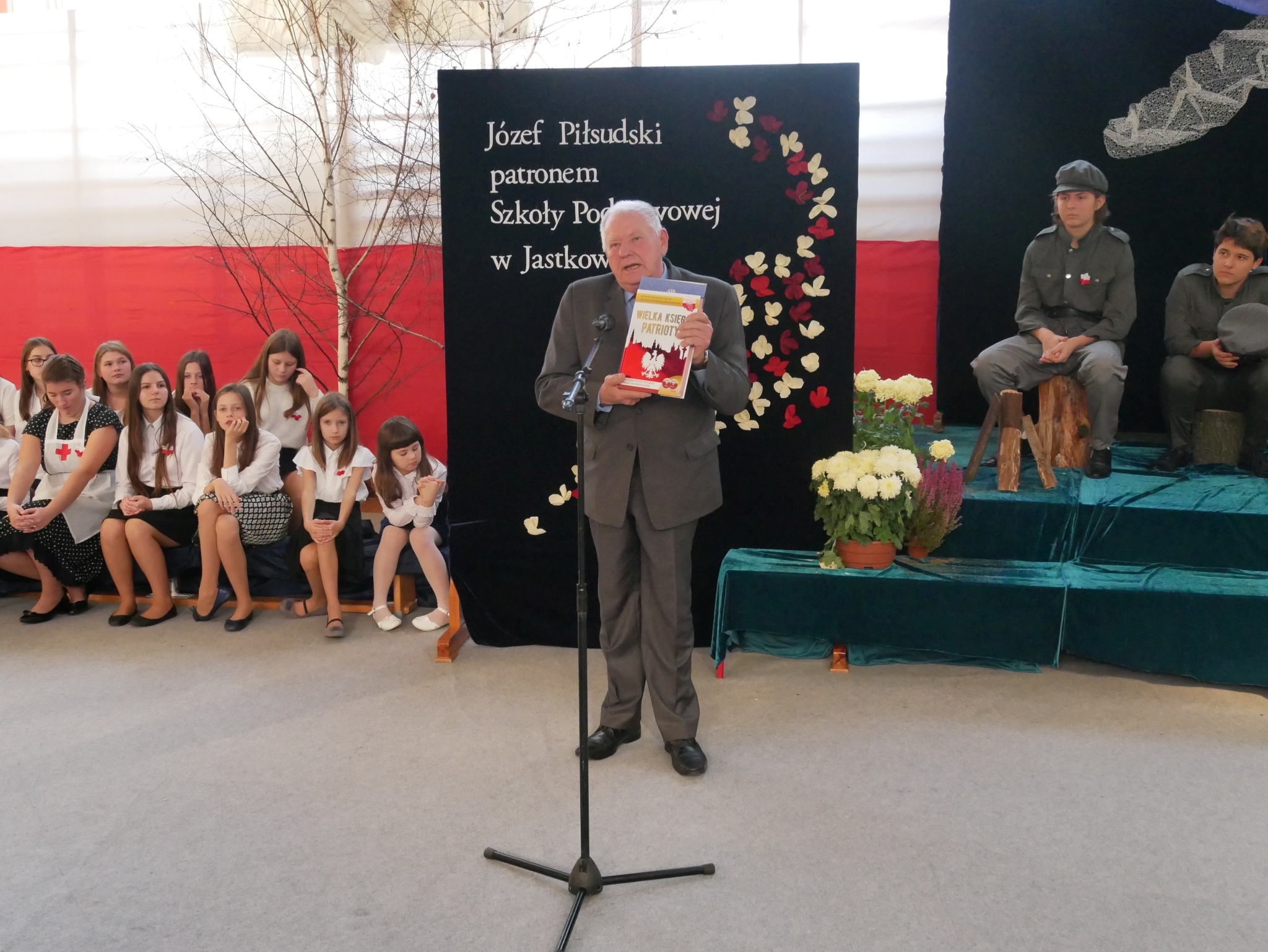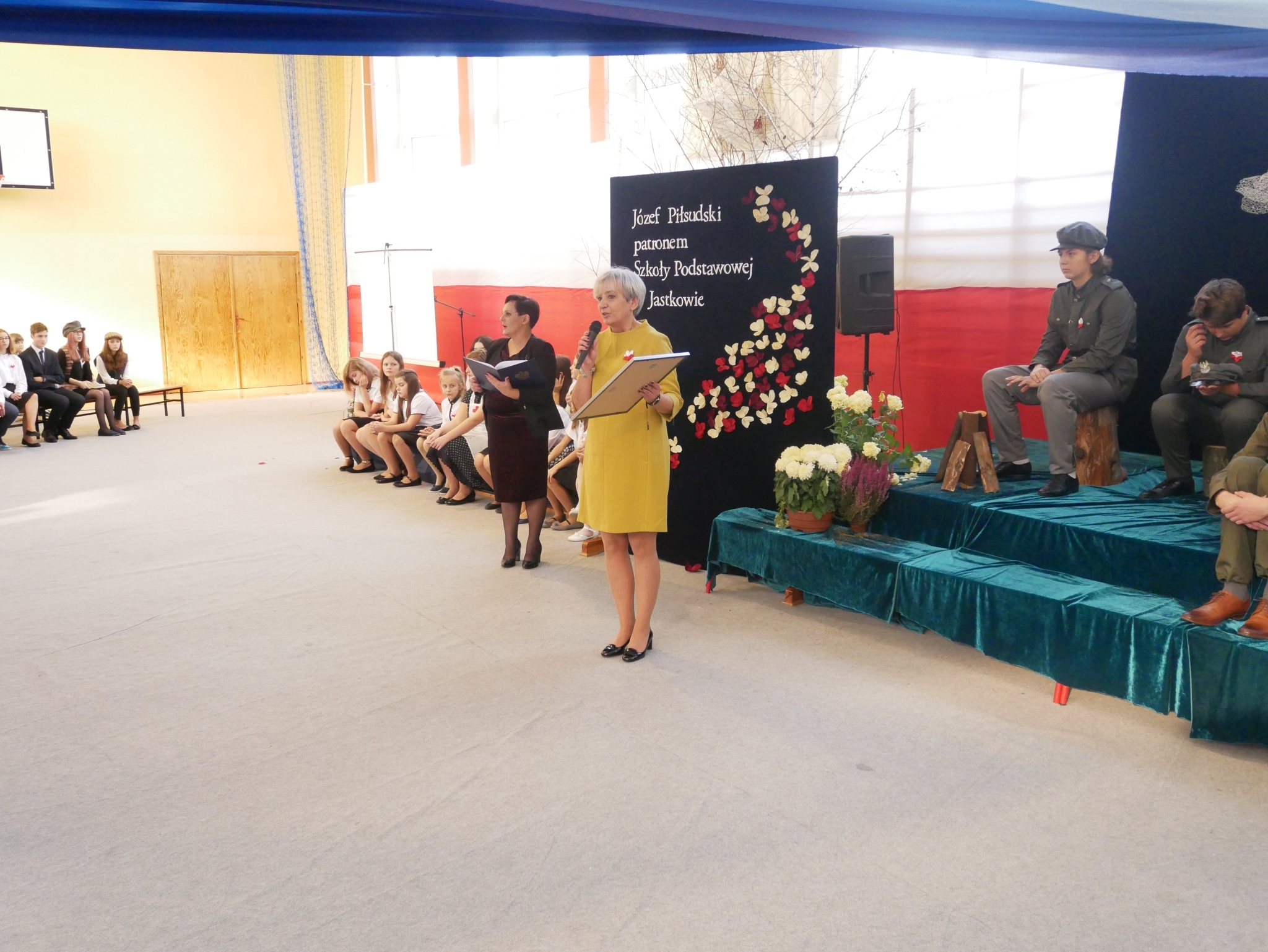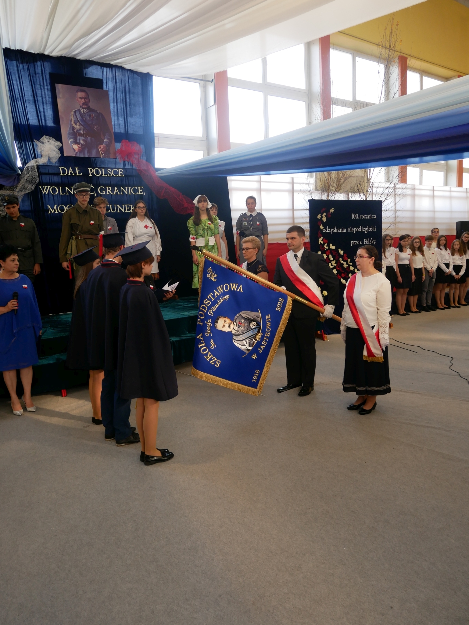 Warto przypomnieć, że Józef Piłsudski był patronem naszej szkoły w latach 1934-1939. W związku z sytuacją polityczną okresu powojennego, nowym patronem szkoły został Tadeusz Kościuszko – człowiek niezwykle zasłużony w historii naszego kraju, który jednak, w przeciwieństwie do Józefa Piłsudskiego, nie był bezpośrednio związany z historią naszej miejscowości. Gdy z dniem 31 sierpnia 2017 r. zakończyło działalność Gimnazjum im. Józefa Piłsudskiego w Jastkowie uznaliśmy za zasadne, aby Szkoła Podstawowa w Jastkowie ponownie otrzymała imię tego wielkiego Polaka – niezłomnego patrioty, wielkiej klasy polityka i męża stanu, legendarnego komendanta I Brygady Legionów.