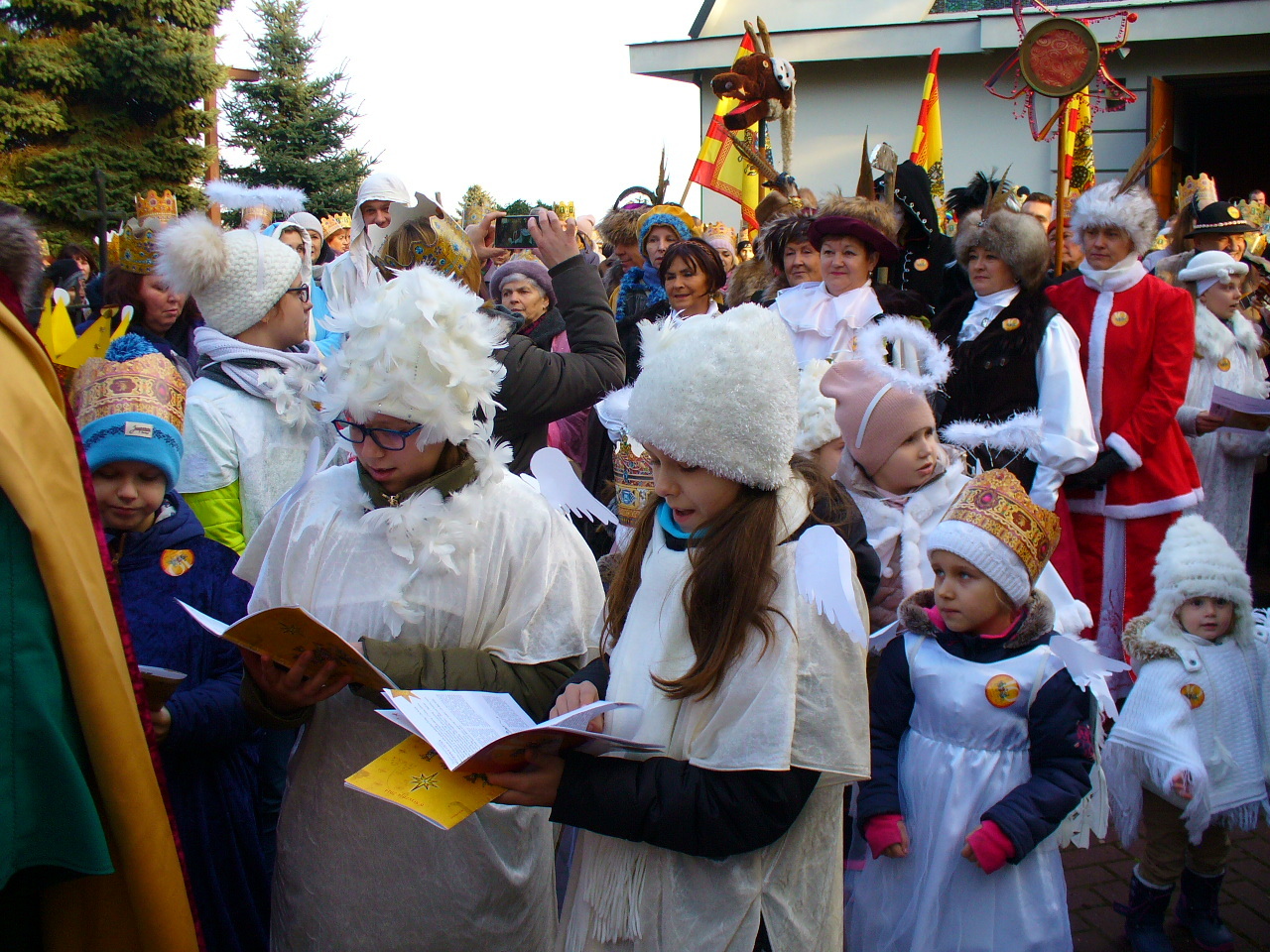 Już po raz V wyruszył Orszak Trzech Króli w parafii św. Piotra i Pawła w Tomaszowicach. Forma orszaku w Tomaszowicach stała się niezwykle atrakcyjna za sprawą KGWiKR w Mosznach. Uczestnikom Mszy Św. orszaku rozdano korony, śpiewniki i naklejki symbolizujące to święto. Tradycyjnie uroczystości rozpoczęła Msza św. celebrowana przez proboszcza parafii ks. Józefa Brodaczewskiego. We Mszy świętej brały udział dzieci i młodzież z okolicznych miejscowości śpiewające i grające w orkiestrze orszakowej i chórku aniołków przygotowanych przez Annę Karwat. Jak zawsze w orkiestrze mogliśmy liczyć na: Andrzeja Zagrodnika, Józefa Kowalskiego, Grzegorza Karwata, Weronikę Paprotę, Weronikę i Anię Dalmata, Natalię Dalmata, Krzysztofa Chołaja, Natalkę i Julkę Wrona, Patrycję Filipek, Natalię Siudaj, Tosię Karwat, Karolinkę i śpiewającego z nami zawsze Marcina Zagrodnika. Wystrój kościoła jak również kostiumy, w których prezentowały się dzieci i orszak przygotowała Halina Dworzecka przy wsparciu i czynnym udziale KGWiKR z Moszen. Po mszy wyruszył orszak prowadzony przez Trzech Króli i ich dwór. W rolę Trzech Króli wcielili się: Marian Chęć, Ryszard Kowalik z Moszen i Mirosław Skałecki z Tomaszowic. Rolę Św. Rodziny odegrali wspaniale Państwo Sałęgowie z półtorarocznym Alankiem. Uroczystości zakończyły się w kościele konkursem na najpiękniejszy samodzielnie zrobiony strój królewski, w którym brały udział wszystkie dzieci uczestniczące w orszaku.