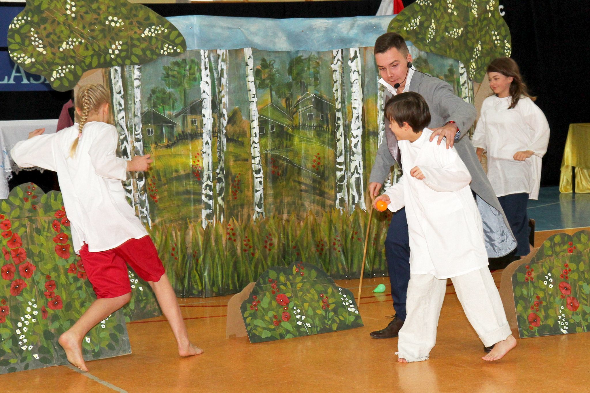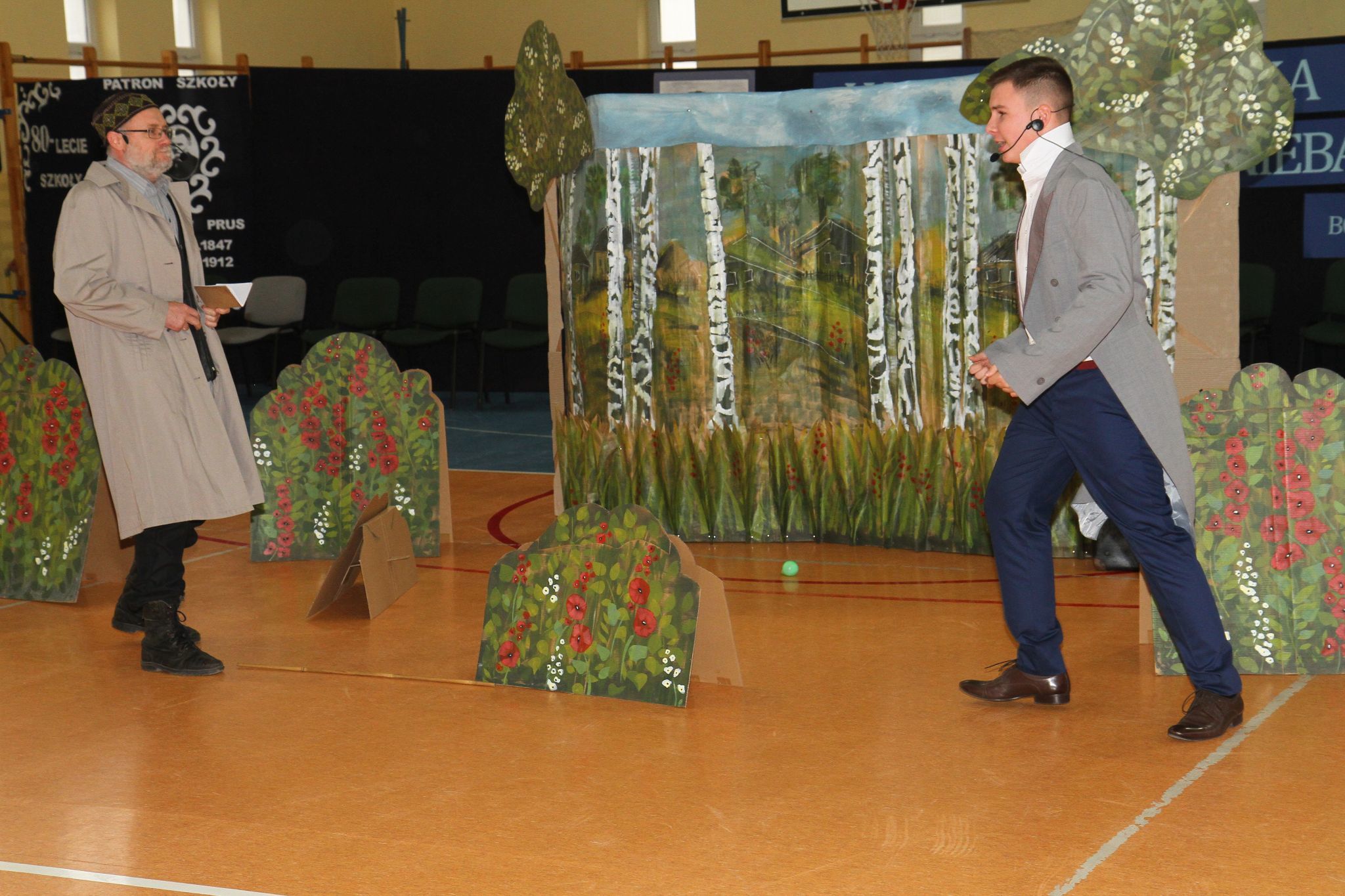 Następnym punktem było przedstawienie w wykonaniu uczniów klasy szóstej przygotowanych przez pana Marcina Klimowicza. Młodzi aktorzy wystąpili w spektaklu na podstawie noweli swojego patrona, Bolesława Prusa, pod tytułem Folwark pana Dudkowskiego. Piękną scenografię do przedstawienia wykonała mama jednego z uczniów klasy piątej, pani Edyta Orowicz.