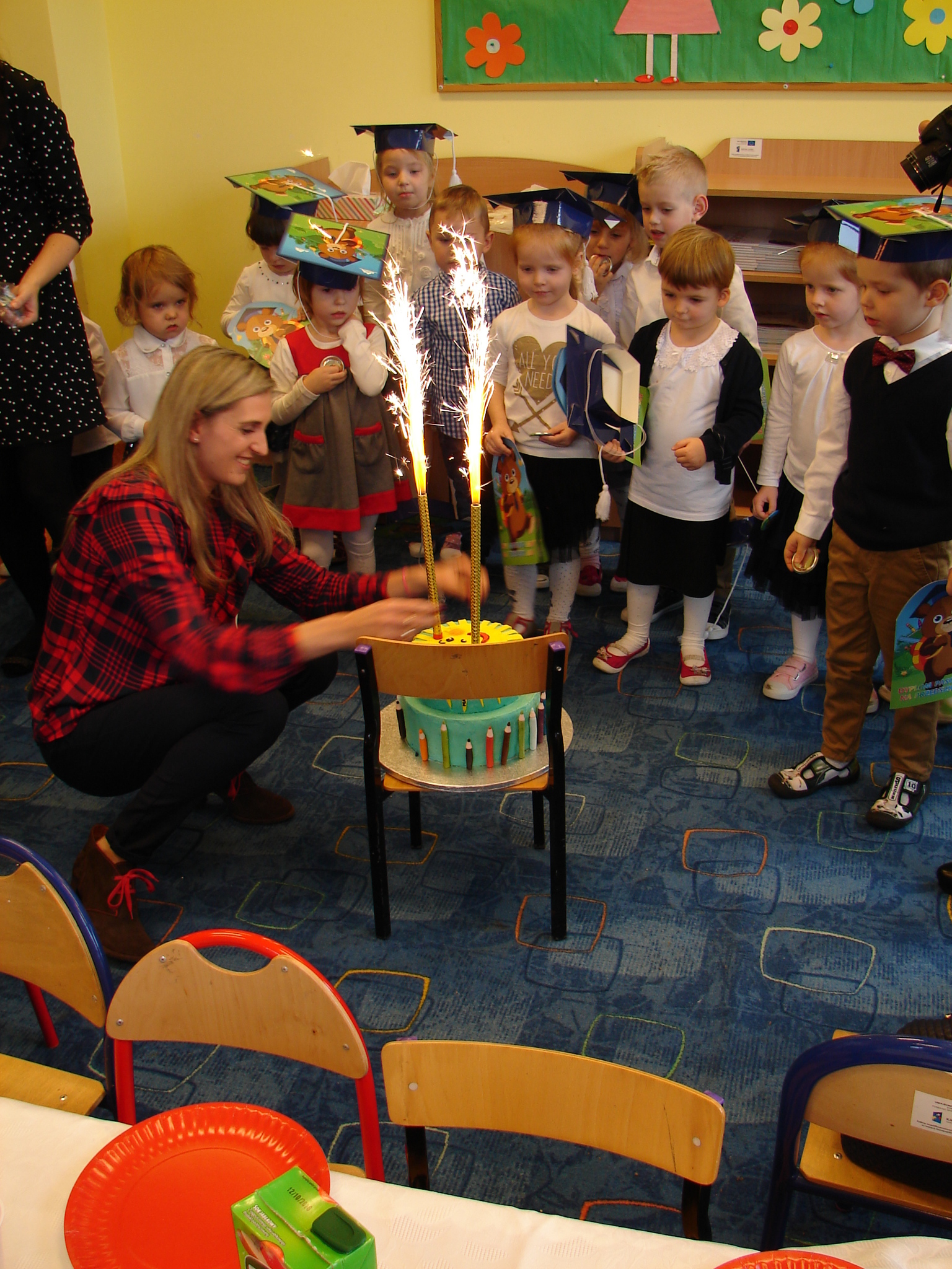 Podczas uroczystości pasowania maluchy zaprezentowały przybyłym gościom wierszyki, piosenki i tańce, których nauczyły się do tej pory. Odświętny strój, przepiękne kolorowe birety,