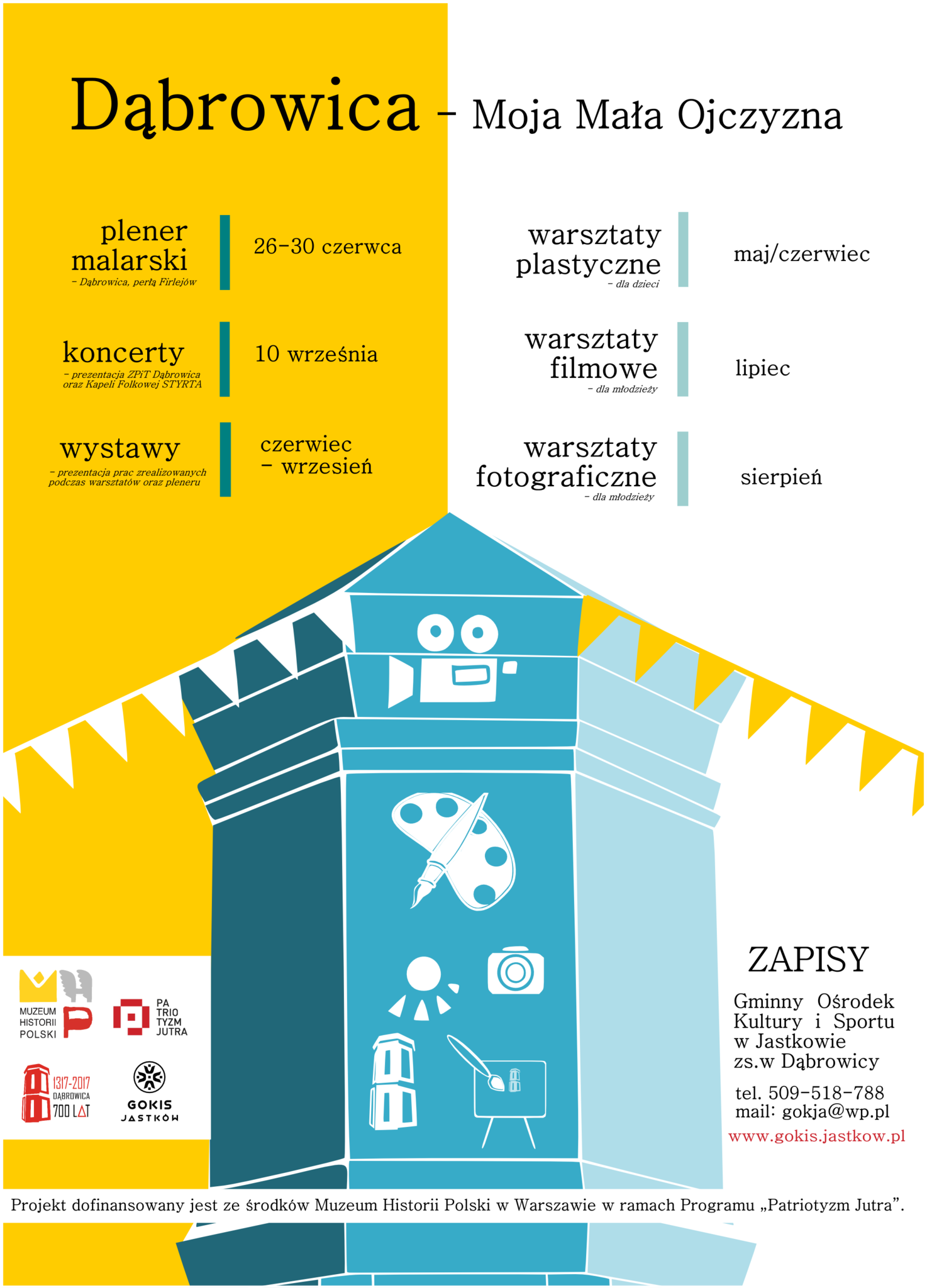 A młodzież zachęcamy do udziału w bezpłatnych warsztatach: filmowych (lipiec) i fotograficznych (sierpień), które realizowane będą również na terenie Dąbrowicy.