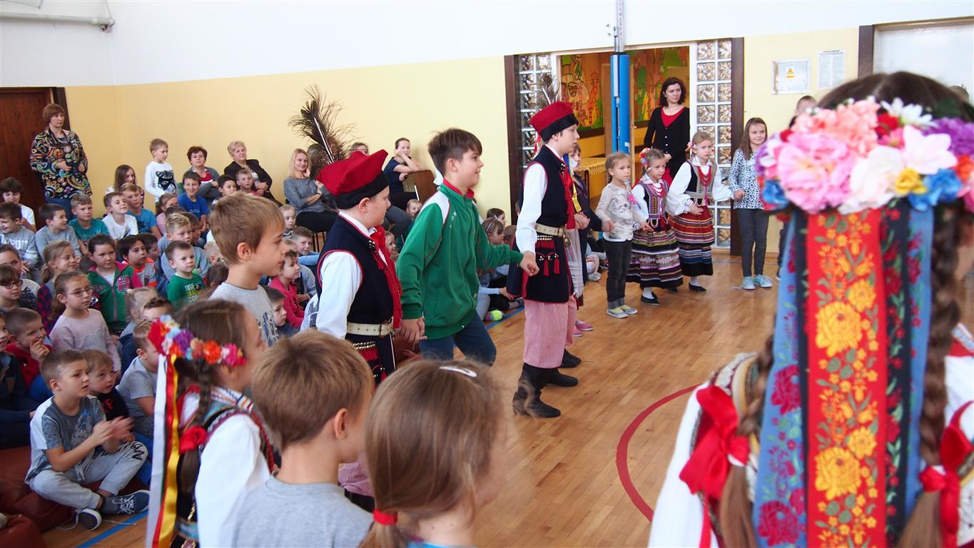 Grupa dziecięca Zespołu Pieśni i Tańca "Dąbrowica" zaprezentowała 22 listopada tańce ludowe w trzech szkołach gminy Jastków. - "W tym roku odwiedziliśmy szkoły podstawowe w Ożarowie, Snopkowie oraz Płouszowicach. Atmosfera była niesamowita! Dziękujemy za serdeczne przyjęcie i możliwość zaprezentowania swojej taneczne pasji! Tancerze pokazali podstawowe kroki do trzech ludowych tańców: Lublin, Kraków oraz Śląsk. Wszystko odbyło się przy żywej muzyce granej przez kapele ludową z Dąbrowicy."