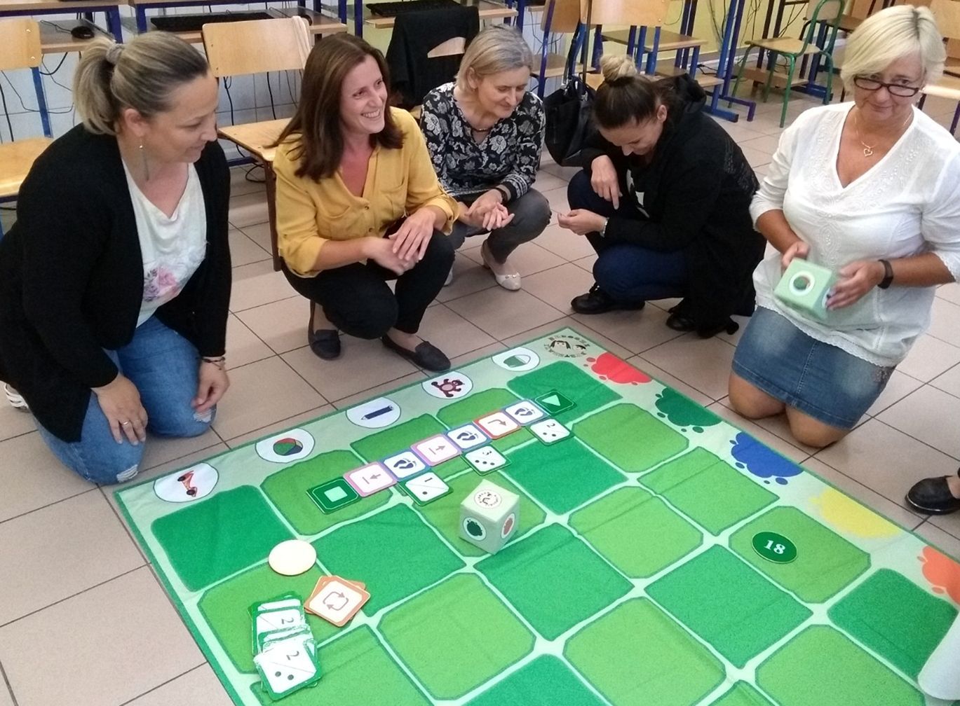 - doskonalenie warsztatu nauczycieli edukacji wczesnoszkolnej poprzez podnoszenie umiejętności dotyczących programowania offline oraz nauczania matematyki i innych edukacji w interesujący sposób z wykorzystaniem maty edukacyjnej i kafelków,