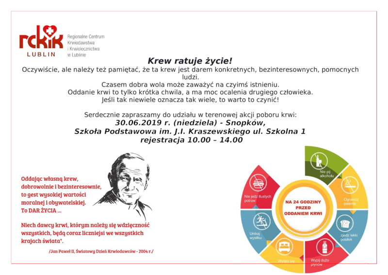 SERDECZNIE ZAPRASZAMY DO UDZIAŁU W TERENOWEJ AKCJI POBORU KRWI