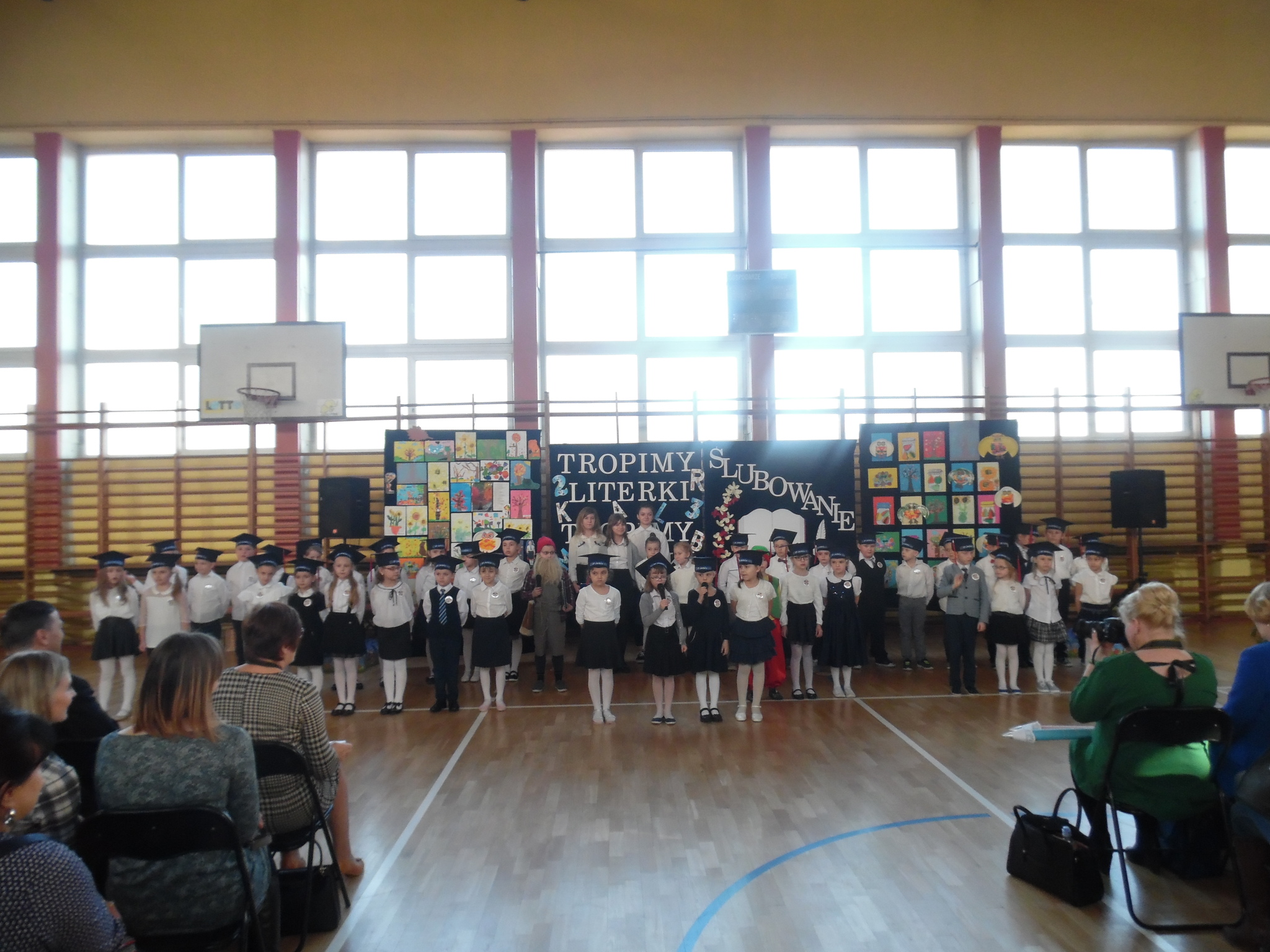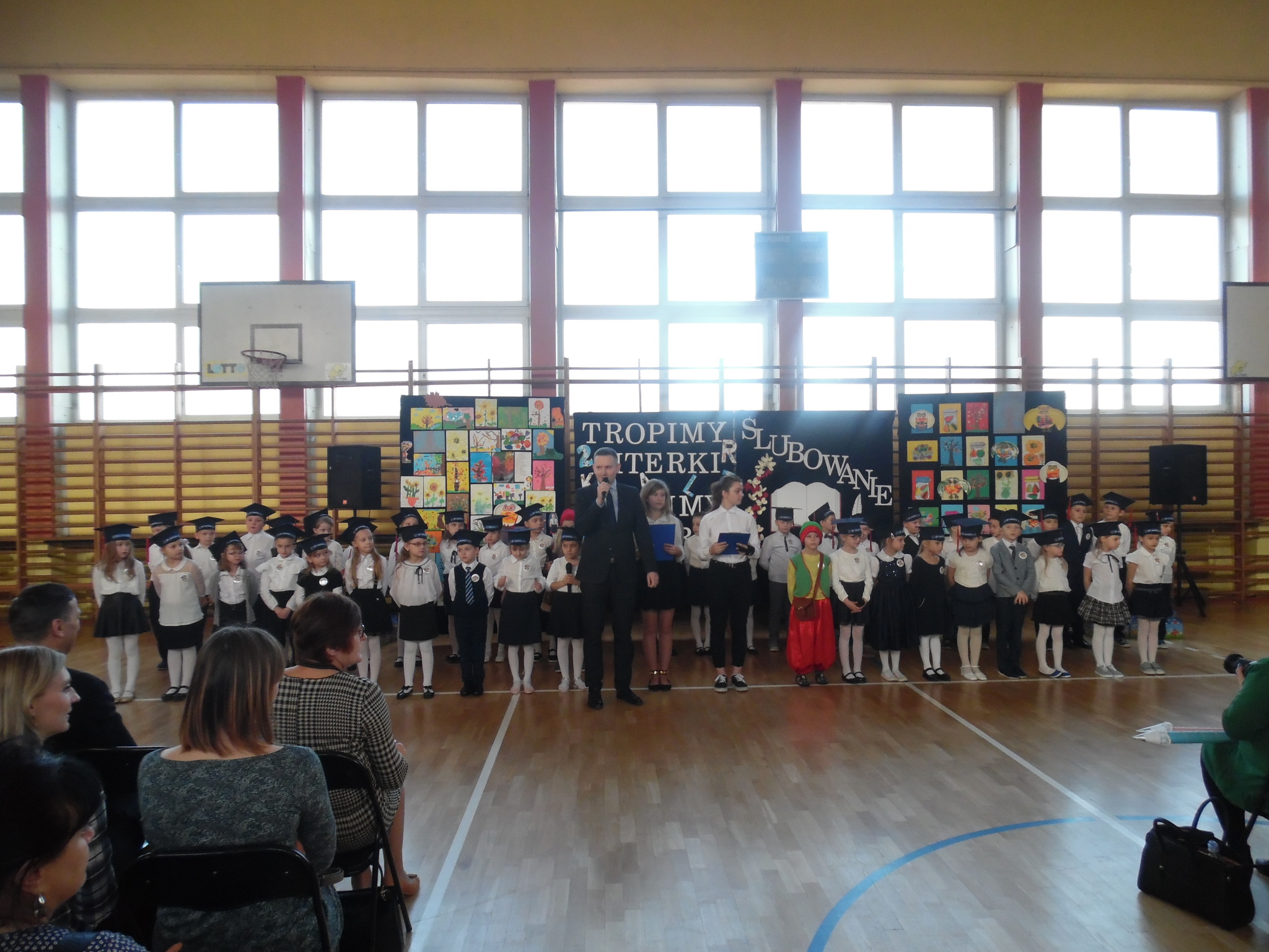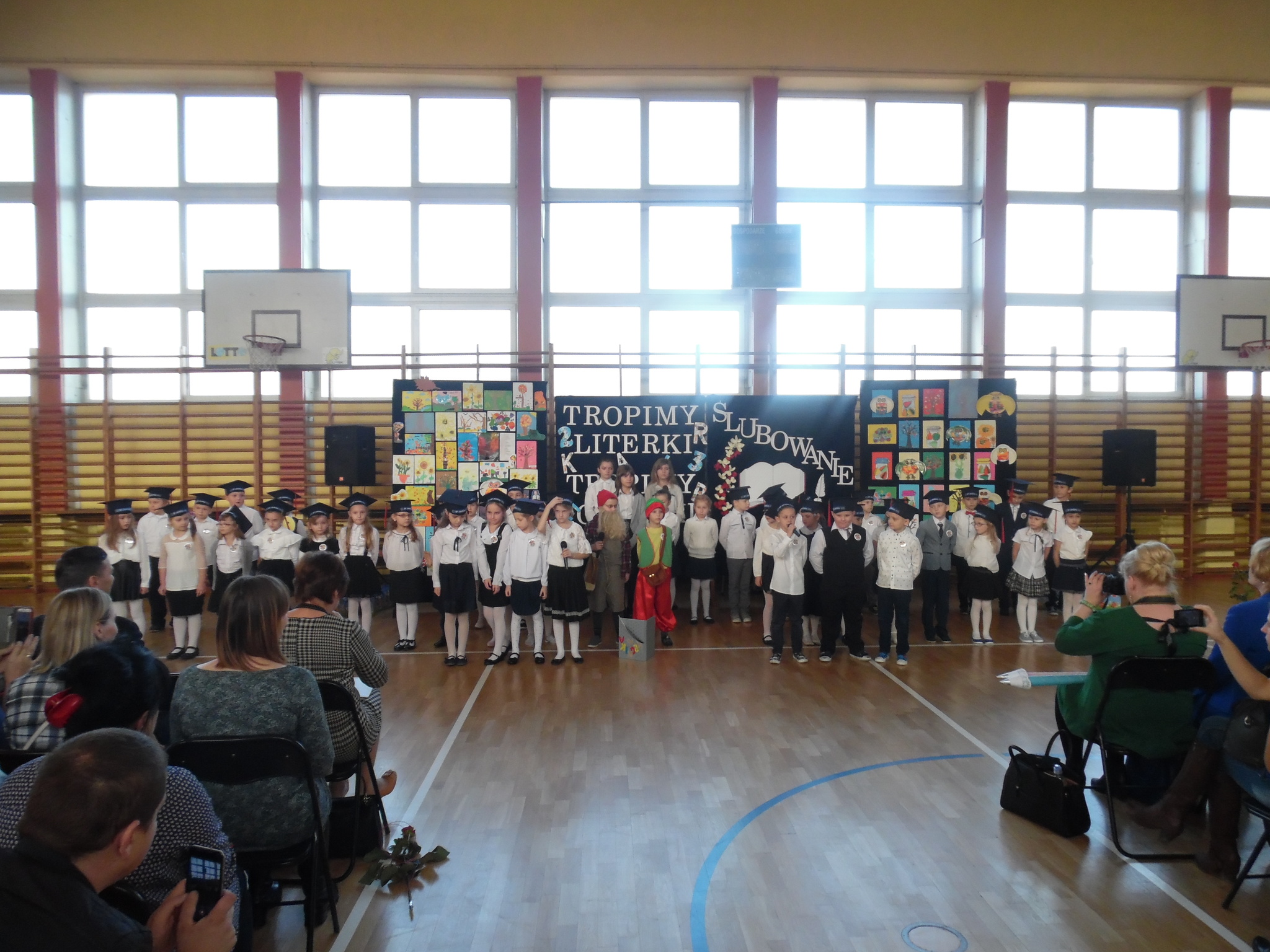 28 listopada to, jak dotąd, najważniejszy dzień w życiu szkolnym pierwszoklasistów. Tego oto dnia 42 uczniów przystąpiło do Uroczystego Ślubowania Uczniów Klas Pierwszych. Na tę uroczystość przybyło wielu znakomitych gości. Rodzice, nauczyciele i uczniowie z radością czekali na ten dzień. Dzieci przedstawiły krótki program artystyczny. Były wiersze, piosenki i pląsy przy wesołej muzyce.