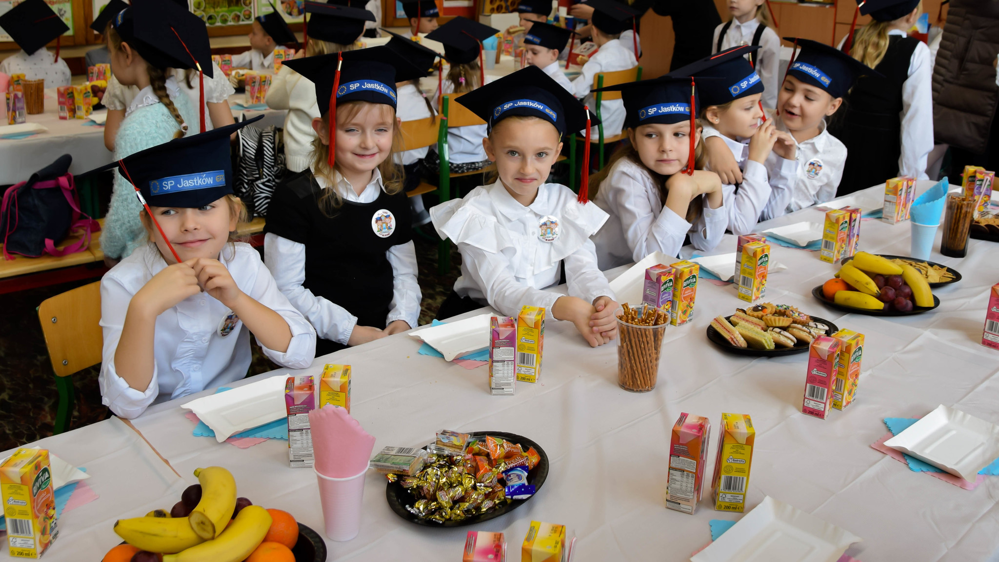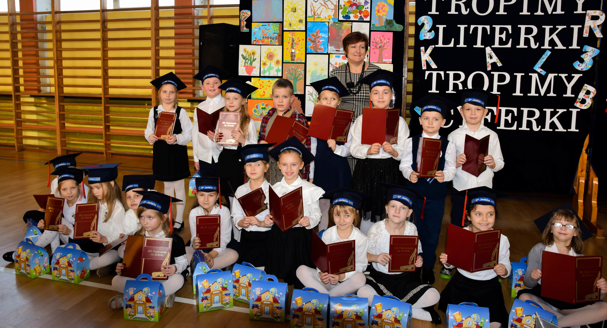 Uczniowie otrzymali pamiątkowe dyplomy, kuferki pełne słodyczy i kolorowe odznaki. Po akademii wszyscy spędzili miło czas przy suto zastawionym stole słodyczami, owocami i sokami.
