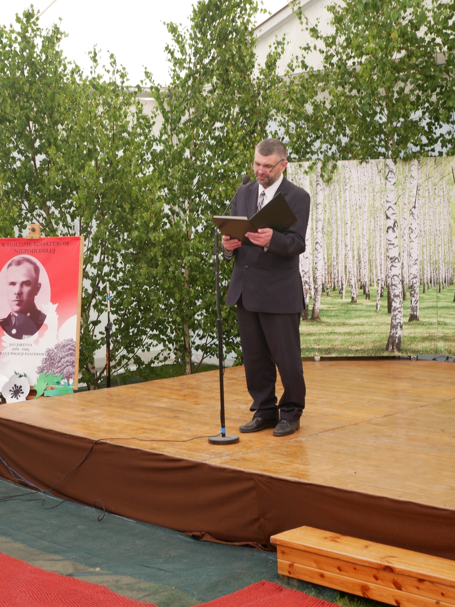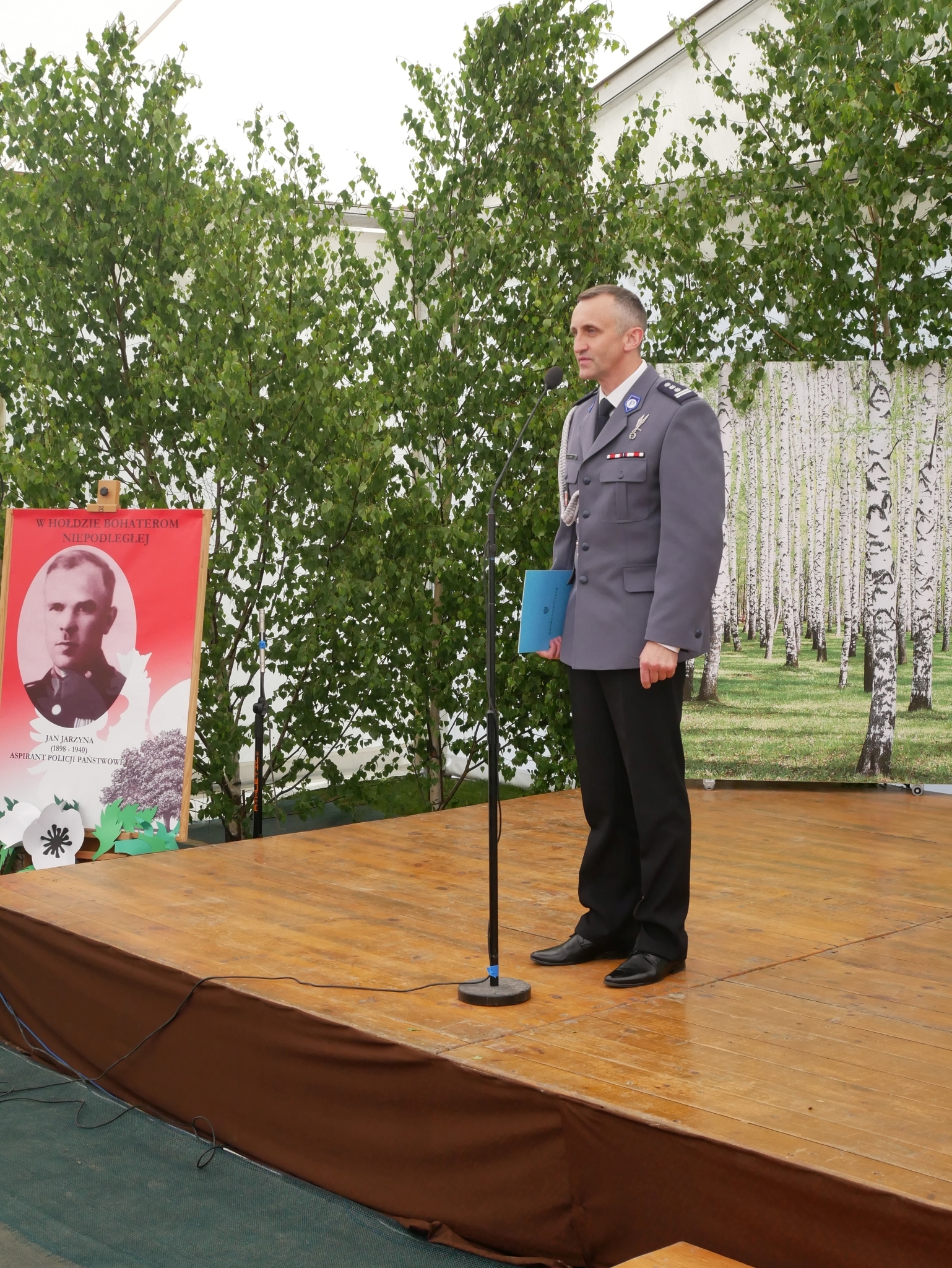 Dyrektor Szkoły Podstawowej im. Anny i Andrzeja Nowaków, pani Krystyna Wawręta podziękowała wszystkim osobom i instytucjom zaangażowanym w organizację uroczystości. Następnie głos zabrali: Wójt Gminy Jastków pani Teresa Kot, Komendant KWP w Lublinie insp. Robert Szewc, Prezes Stowarzyszenia Rodzina Policyjna 1939 pan Michał Krzysztof Wykowski, Prezes Stowarzyszenia Parafiada - ojciec Tomasz Olczak, Wicestarosta- pan Robert Wójcik, w imieniu Wojewody Lubelskiego- pan Marek Wieczerzak, w imieniu Marszałka Województwa Lubelskiego- pan Radosław Więk. Komendant Wojewódzki Policji w Lublinie odczytał okolicznościowy list Komendanta Głównego Policji nadinsp. dr. Jarosława Szymczyka. Odczytany został także list pani Danuty Malon- Prezesa Stowarzyszenia Rodzina Katyńska. Następnie uczestnicy udali się do ogrodu szkolnego, gdzie dokonano posadzenia i poświęcenia Dębu Pamięci ku czci aspiranta PP Jana Jarzyny. Delegacje złożyły kwiaty przy pamiątkowym kamieniu, a uczniowie zapalili znicze. Niezwykle widowiskowym i niezapomnianym punktem uroczystości był pokaz musztry paradnej w wykonaniu Orkiestry Reprezentacyjnej Policji pod batutą mł. insp. Janusza Trzepizura, który odbył się na boisku szkolnym.