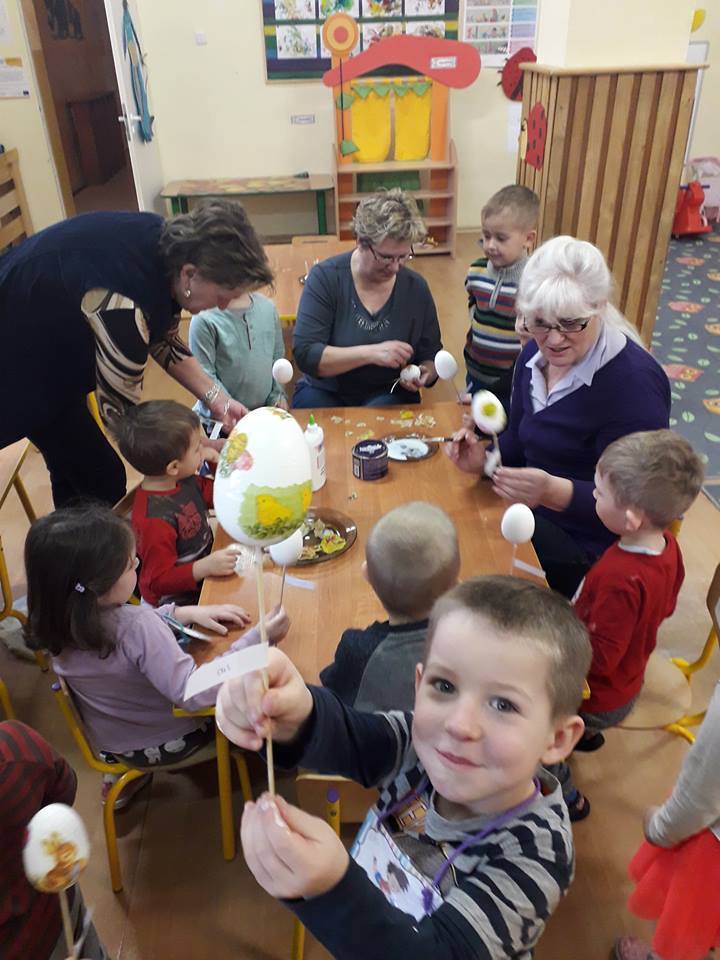Przedszkole Samorządowe w Jastkowie odwiedziły Panie, które poznaliśmy już w ramach projektu Aktywni Seniorzy-Aktywna Społeczność. Dzieci z radością je powitały w przedszkolu i wspólnie ozdabiały steropianowe jajka nowo poznaną techniką. W trakcie spotkania Panie opowiadały o tradycjach wielkanocnych i obrzędach ludowych. Zajęcia przebiegły w miłej i serdecznej atmosferze oraz wprowadziły dzieci w wielkanocny nastrój. Panie udzielają się także w Kole Gospodyn Wiejskich Panieńszczyzna-Jastków i Fundacji Komeńskiego. Dziękujemy za miłe spędzony czas.