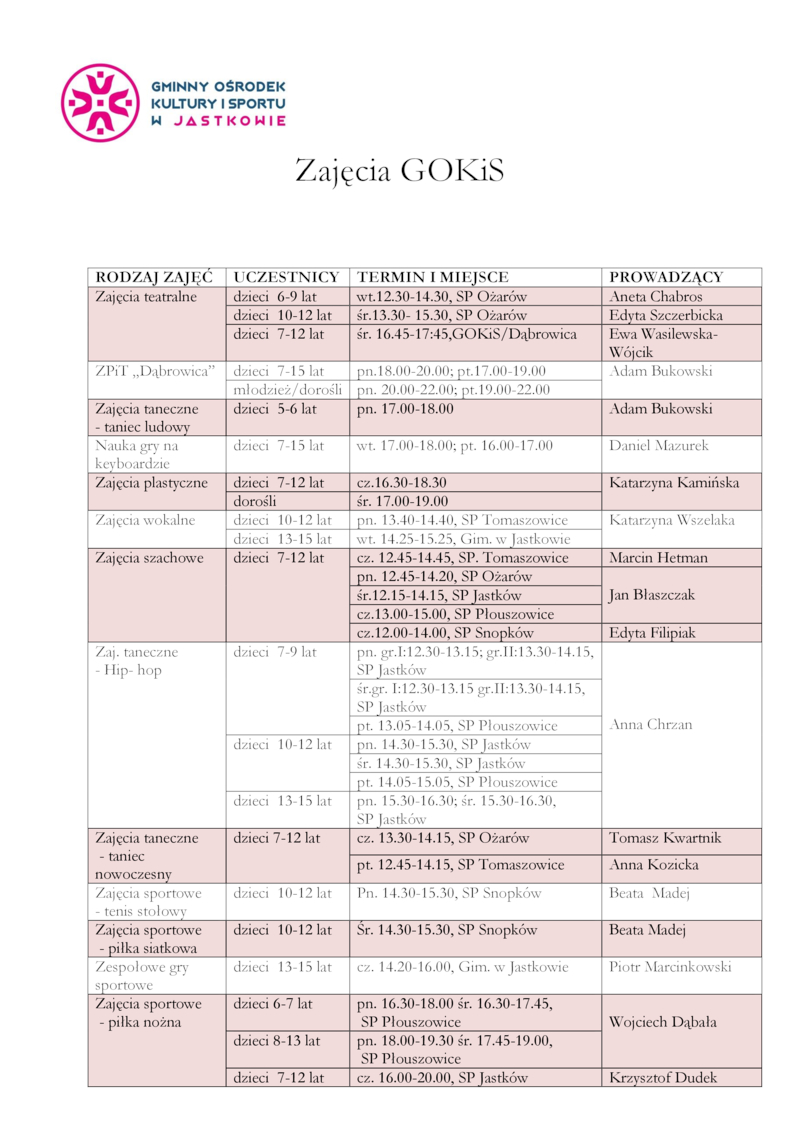 WYDARZENIA ORGANIZOWANE PRZEZ GMINNY OŚRODEK KULTURY I SPORTU