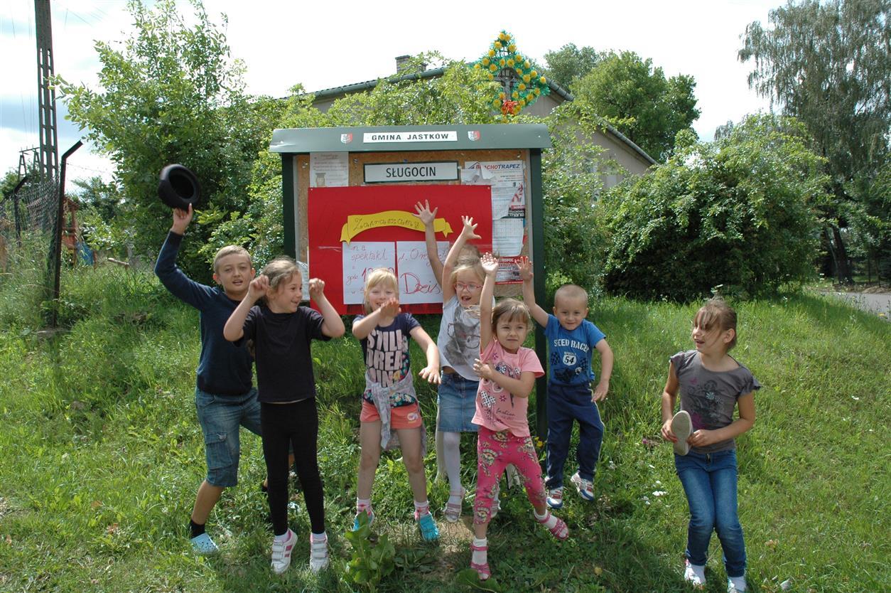W zajęciach brały udział dzieci w wieku 7-11 lat. Podczas tygodnia każdy z uczestników zapoznał się m.in. z warsztatem aktora, tworzeniem afiszu teatralnego  oraz  uczestniczył w grze terenowej ”Poszukiwanie skarbu”. Ostatniego dnia dzieci przeprowadziły próbę generalną, by o godz. 12:00 zaprosić mieszkańców na swój autorski spektakl! Organizatorem zajęć w Sługocinie był Gminny Ośrodek Kultury i Sportu w Jastkowie zs. w Dąbrowicy. Pomysłodawcą i instruktorem była p. Ewa Wasilewska-Wójcik.