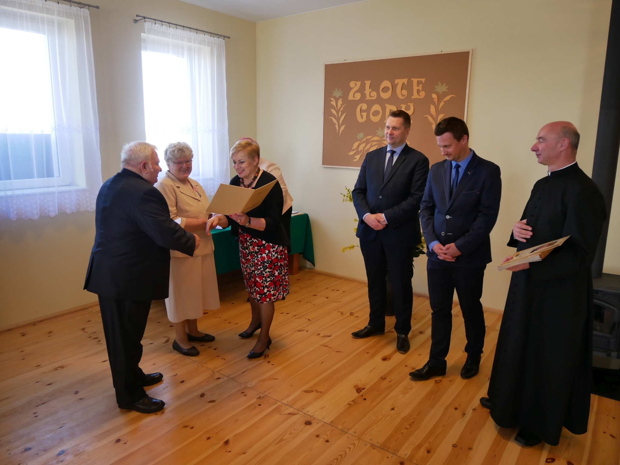 Uroczystość rozpoczęła się Mszą Świętą w intencji jubilatów, odprawioną w kaplicy w Ożarowie przez ks. Zenona Małyszka Proboszcza parafii pw. Przemienienia Pańskiego w Garbowie. Po mszy małżonkowie wraz z zaproszonymi gośćmi udali się na dalszą część uroczystości do świetlicy wiejskiej w Ożarowie. W jej trakcie pan Przemysław Czarnek Wojewoda Lubelski odznaczył jubilatów Medalami za Długoletnie Pożycie Małżeńskie przyznanymi przez Prezydenta RP Andrzeja Dudę. Okolicznościowe dyplomy i gratulacje wręczyli również pani Teresa Kot Wójt Gminy Jastków wraz z panem Markiem Wieczerzakiem Przewodniczącym Rady Gminy, oraz ksiądz Zenon Małyszek. Po symbolicznej lampce szampana i pamiątkowym zdjęciu, uczestnicy wydarzenia obejrzeli występ przygotowany przez młodzieżową grupę artystyczną z Szkoły Podstawowej im. Anny i Andrzeja Nowaków w Ożarowie. Uczniowie przygotowali dwie humorystyczne scenki. Pierwsza z nich pt. „Grunt to rodzina” w zabawny sposób ukazywała perypetie pewnego małżeństwa i problemy sercowe ich córki. Druga scenka pt. „Ufoludki” była rozmową pomiędzy przybyszami z odległej galaktyki, a wiejską gospodynią.